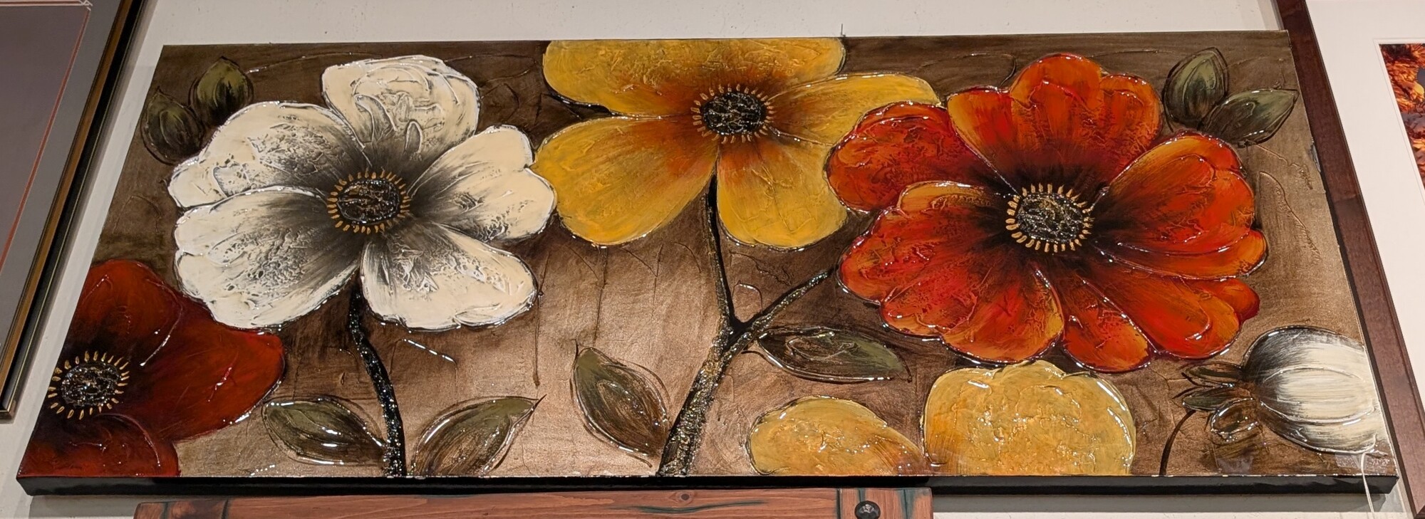 3 BIG FLOWERS Modern Painting, Canvas 60 x 27h