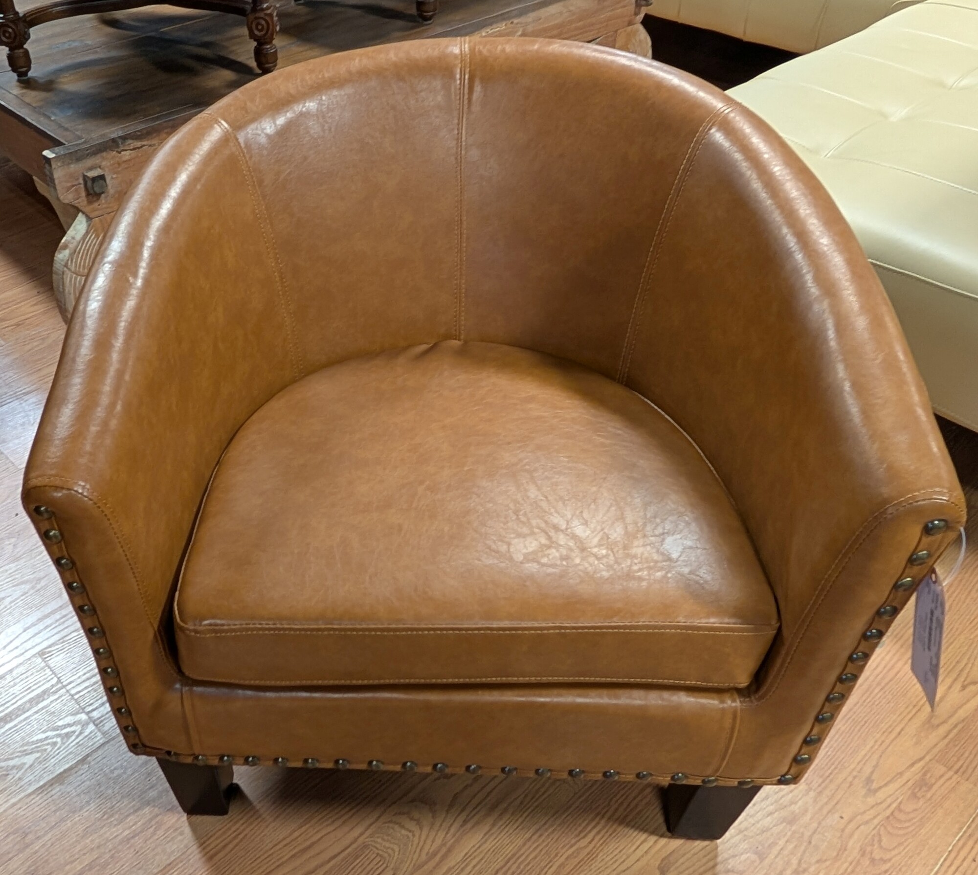 Alton Barrel Chair, Tan, Studded 29 x 27 x 27h Seat 19d Seat 16h