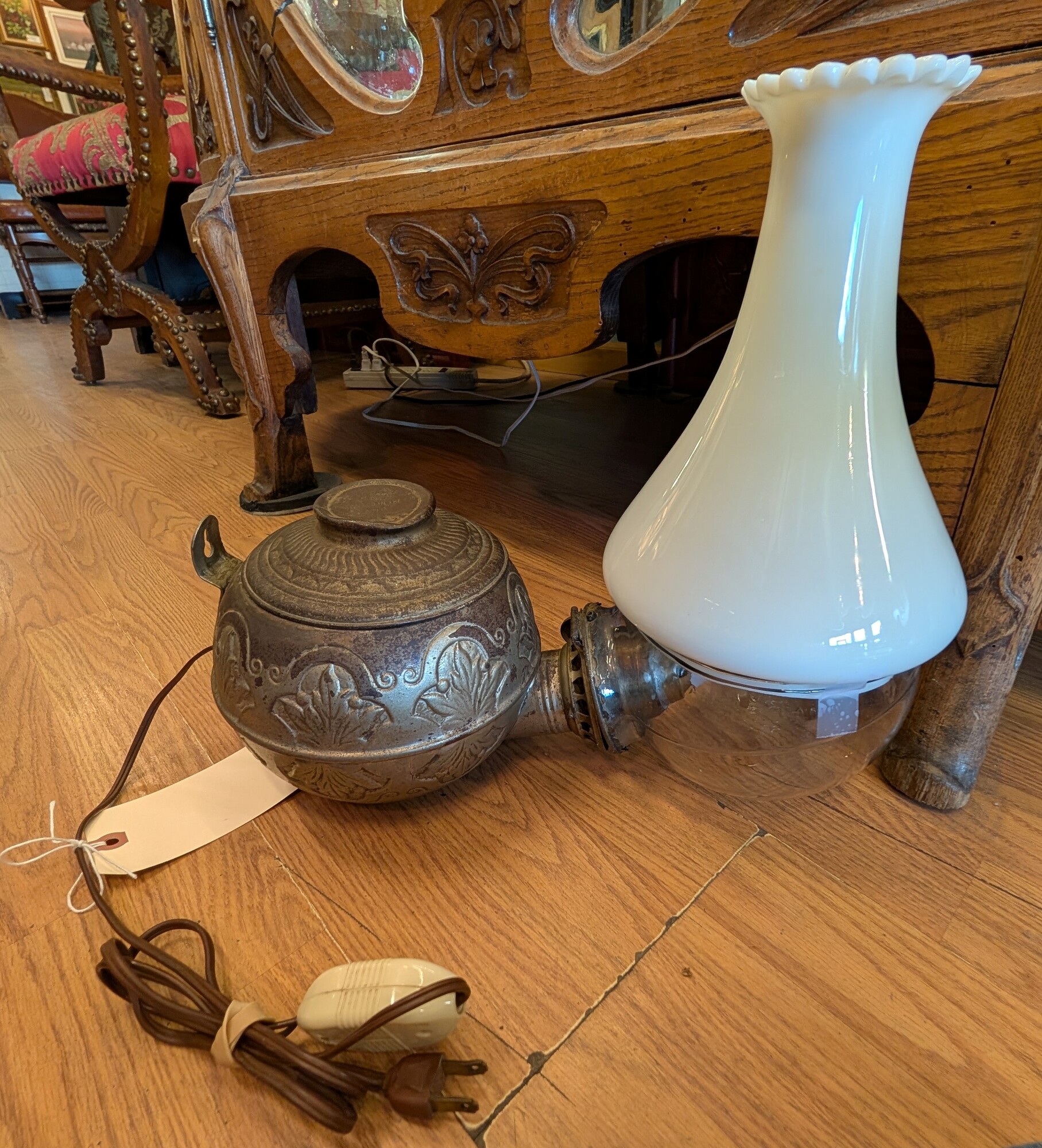 Antique Angle Lamp, M Glass, Shade 6 x 14 x 13h
