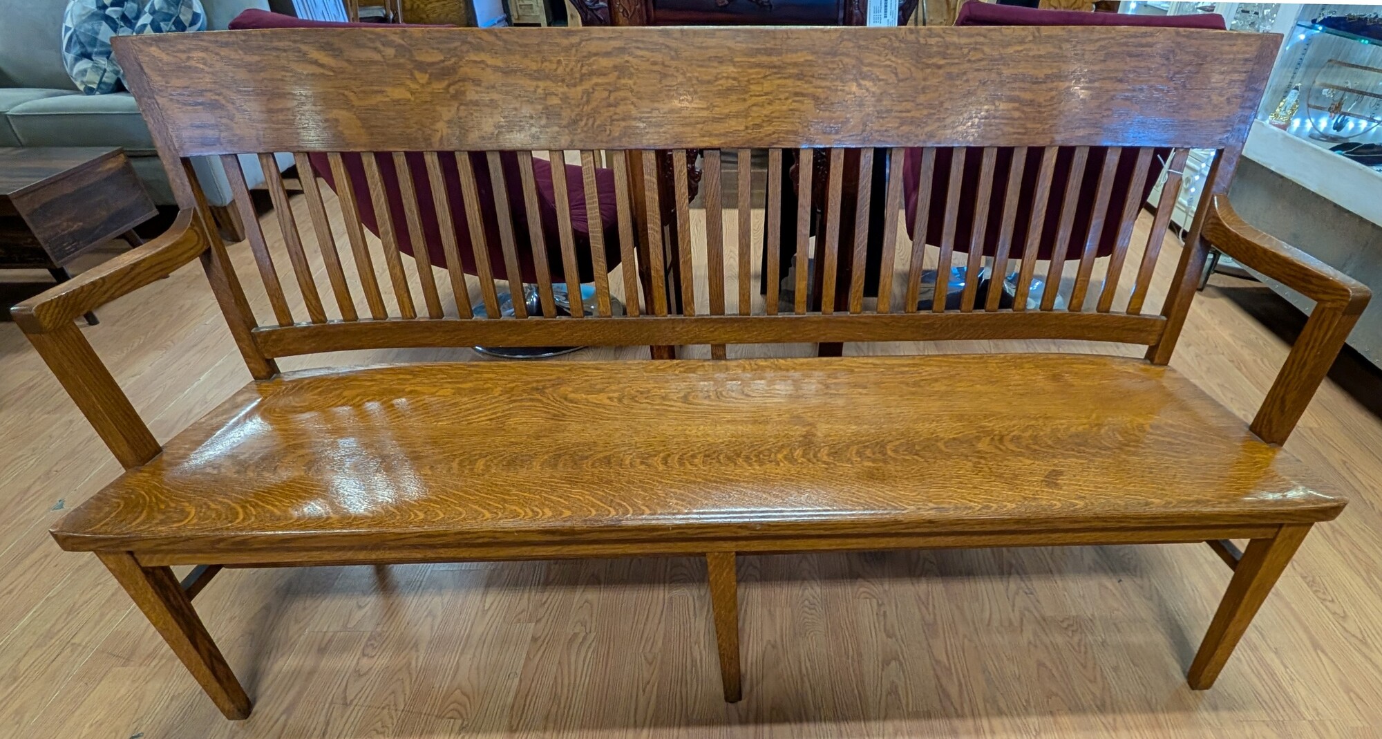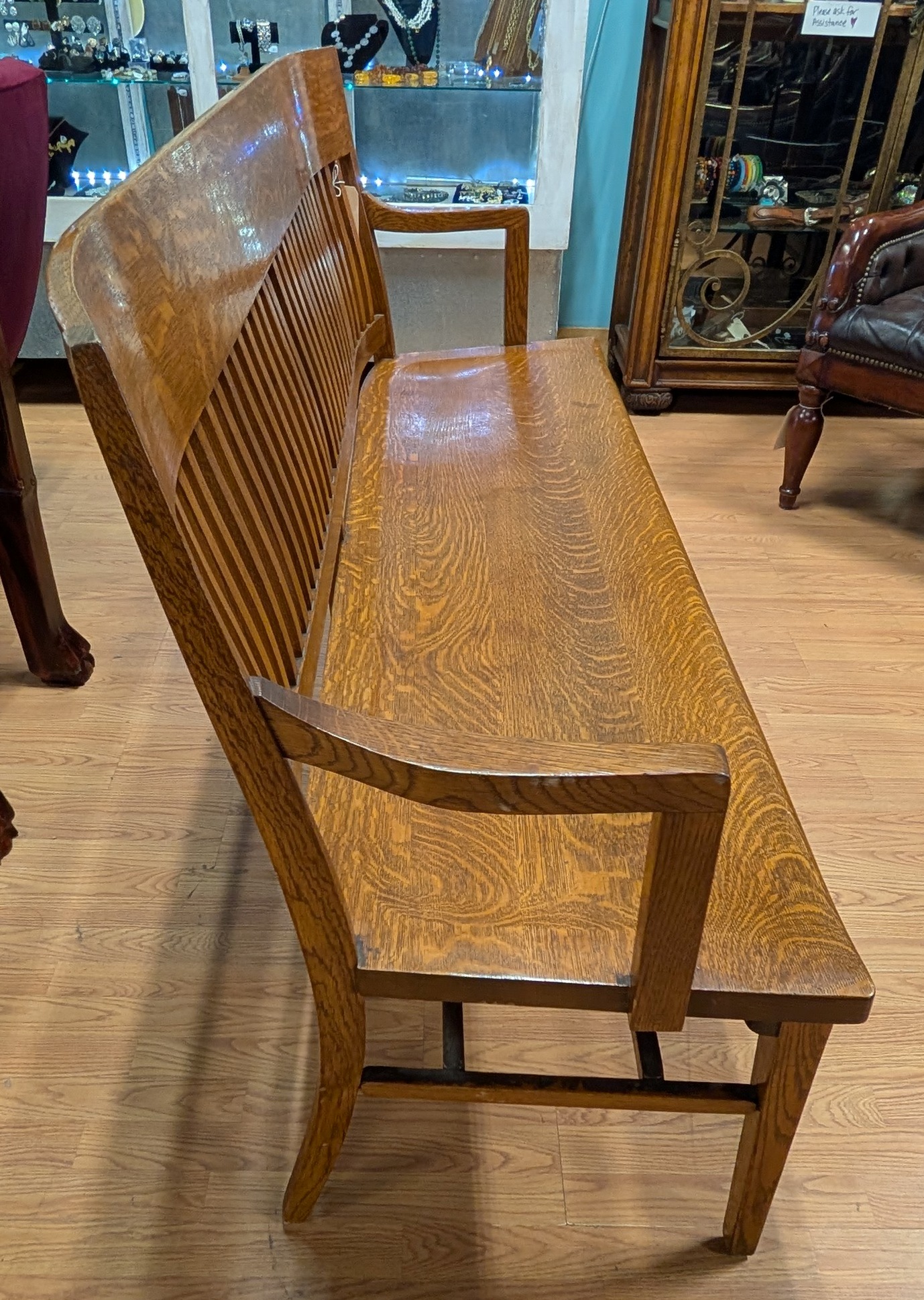 Antique Courthouse Bench, Oak, Industrial 70 x 21 x 37h
