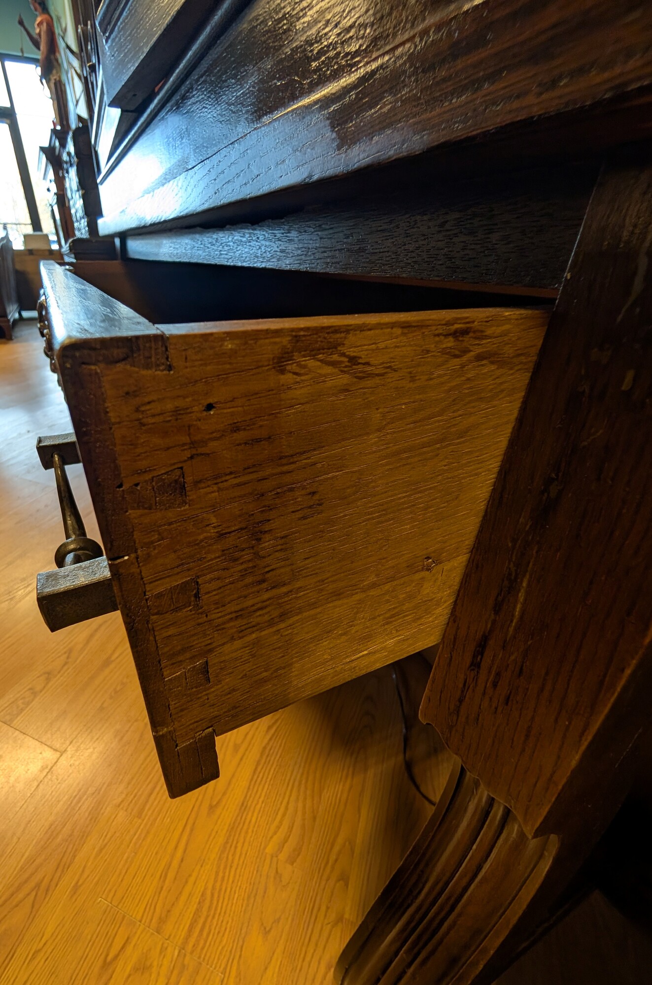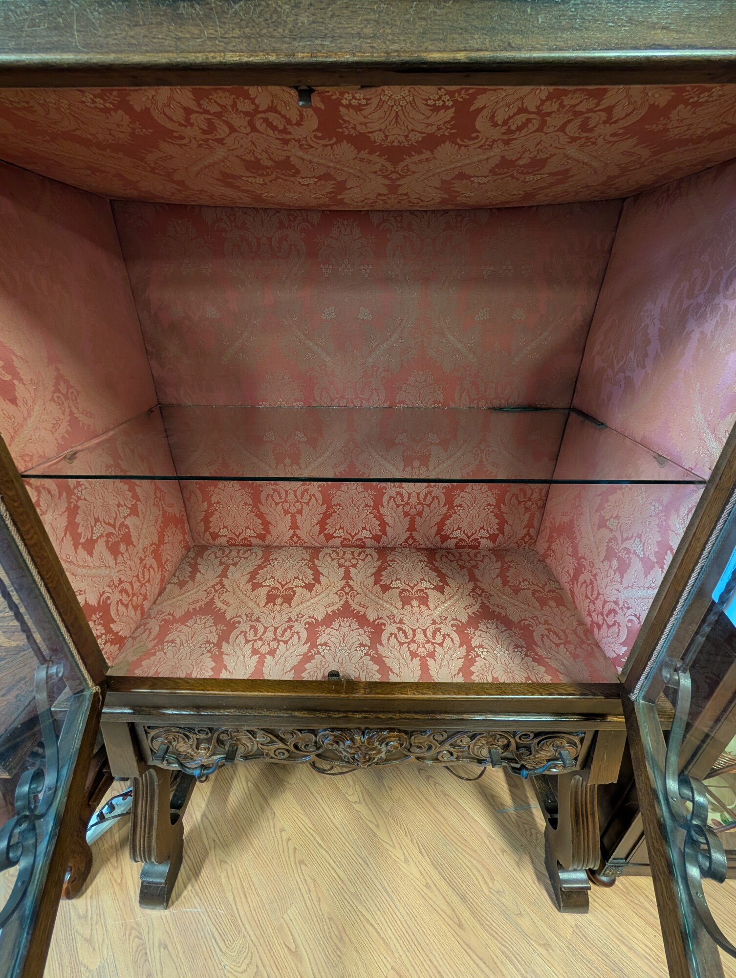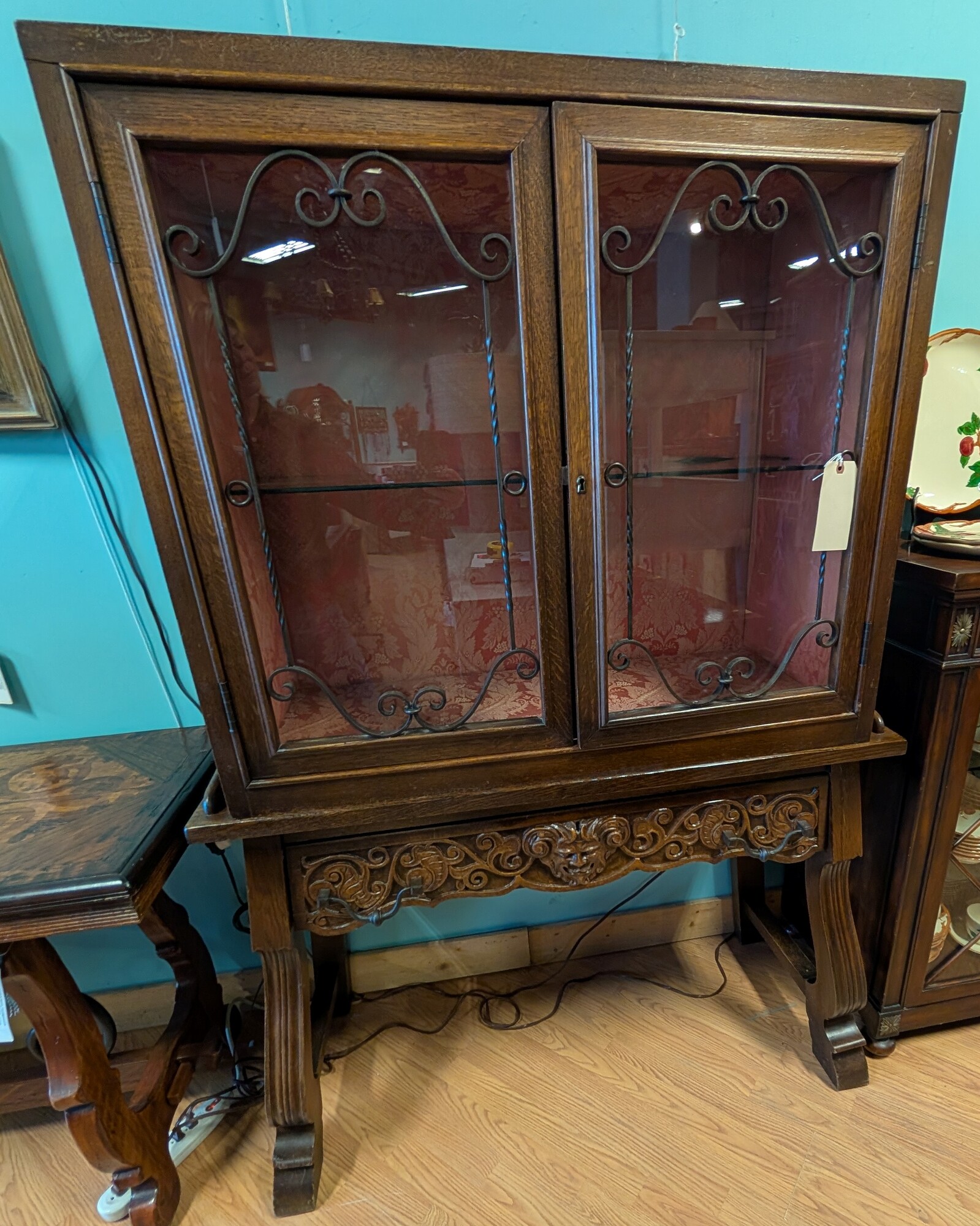 Antique Display 2door 1dr, Gothic, Carved 45 x 19 x 66h