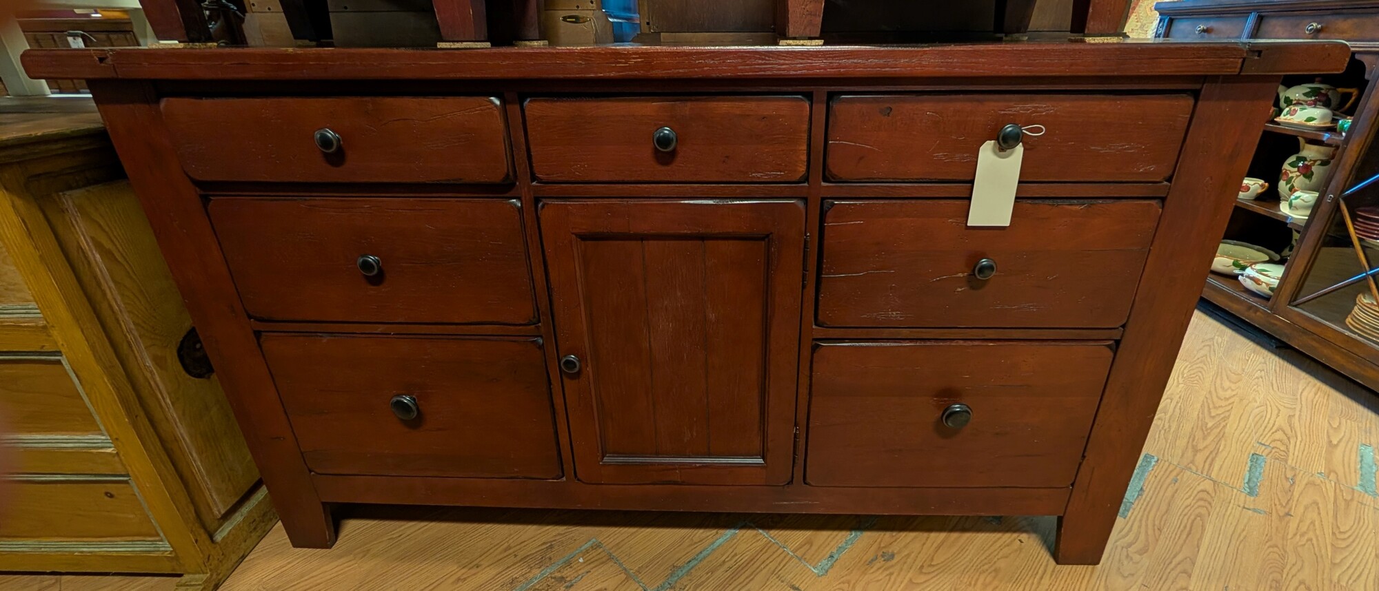 Attic Heirlooms W/Door, DkRed, 7 Drawer 68 x 19 x 37h