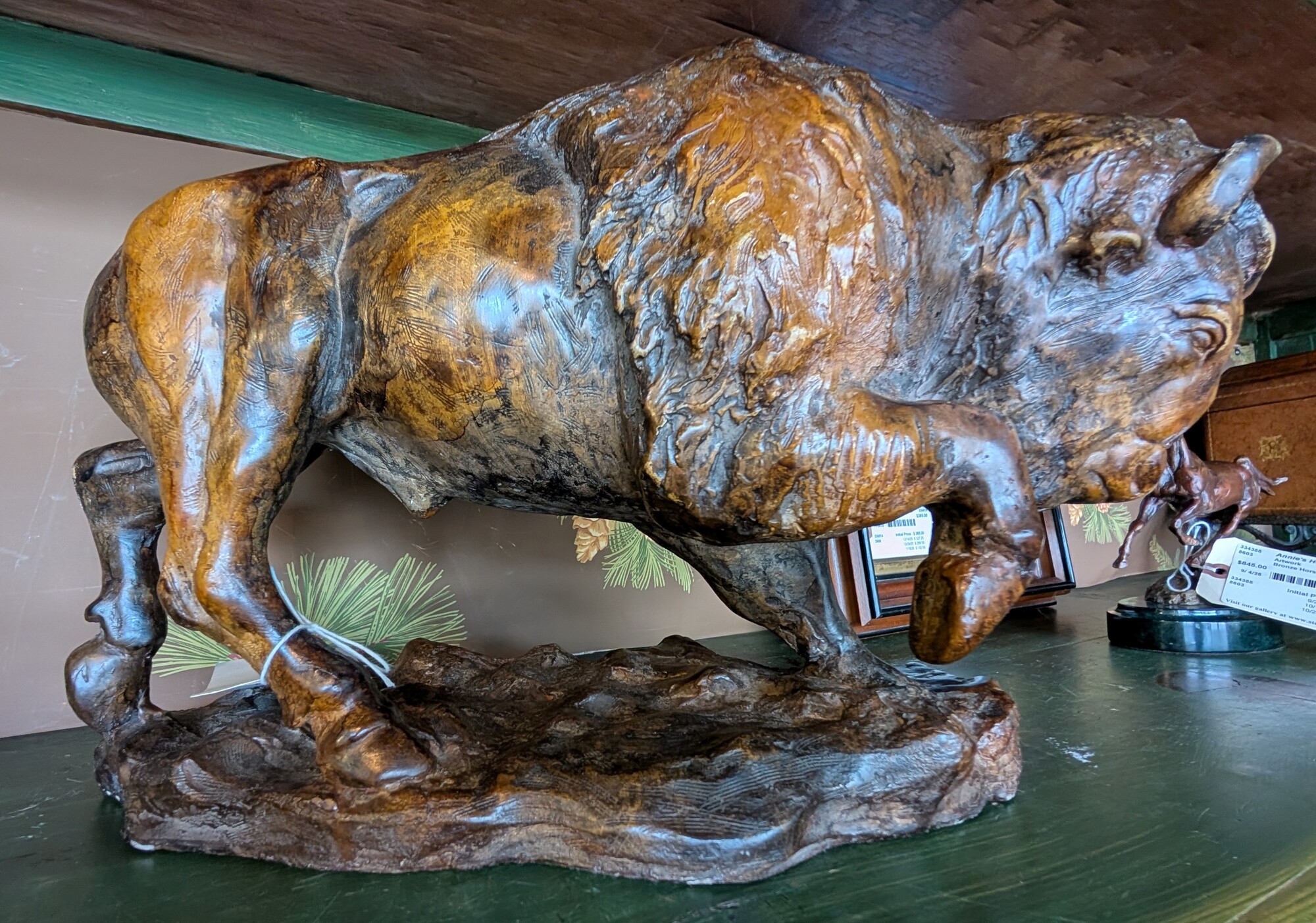 Attila Tivadar Sculpture, Buffalo, Cast Stone 16 x 16 x 12h