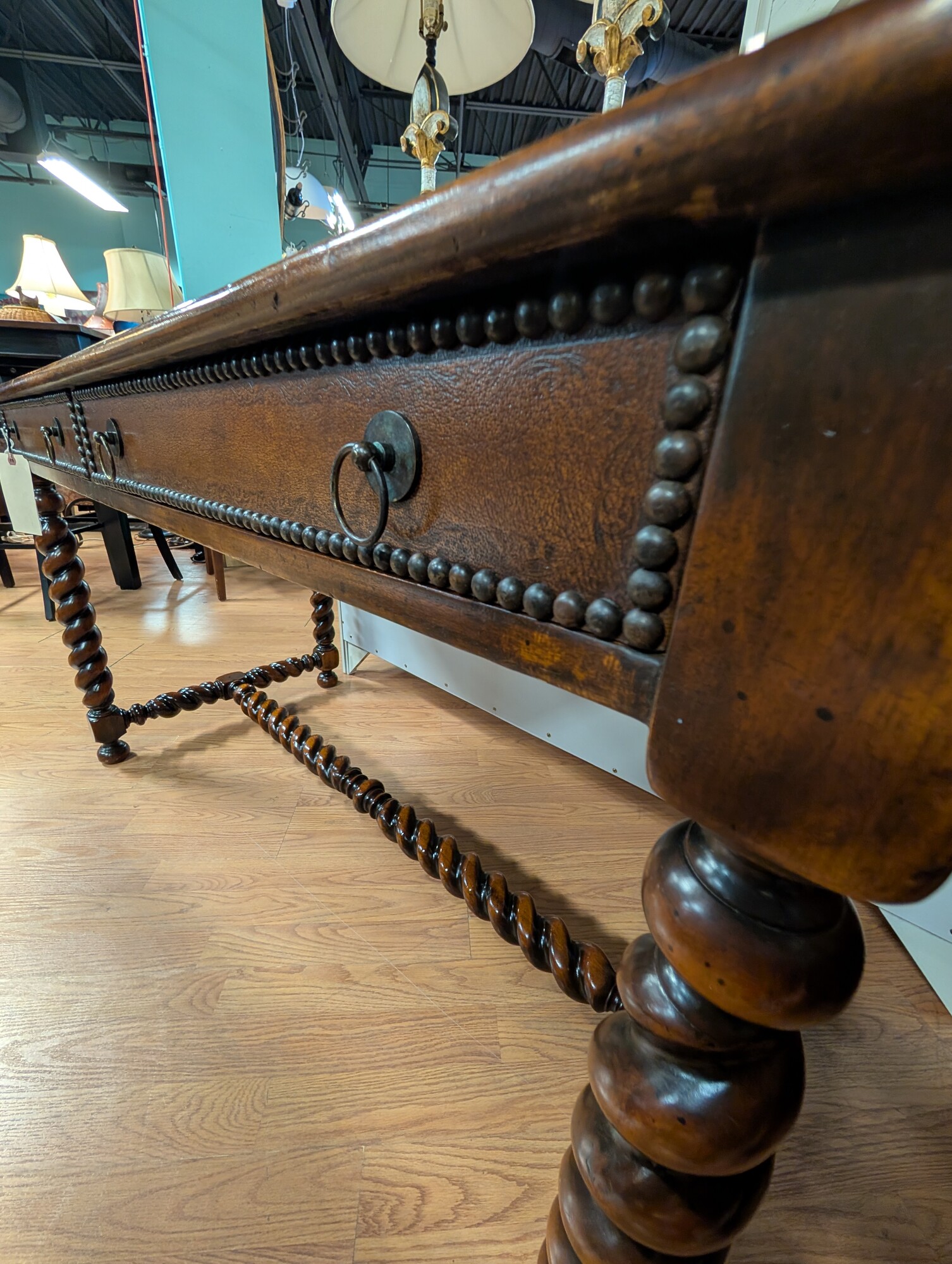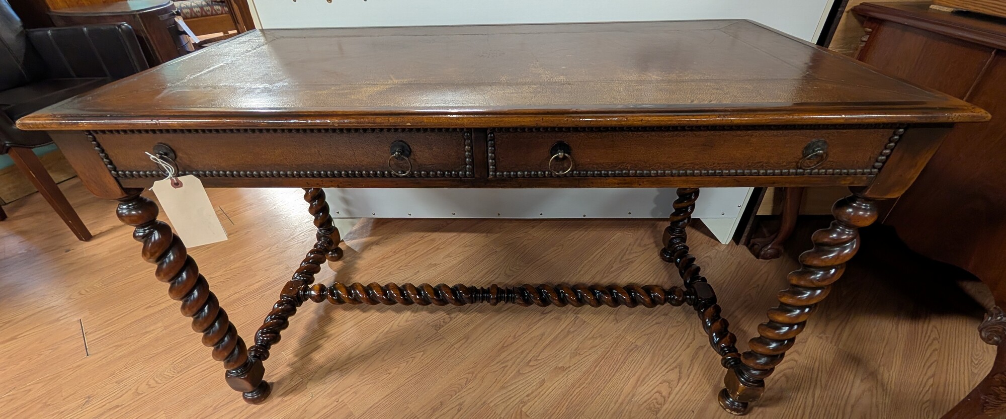 Barely Twist Leather Top, 2 Drawer, Vintage 50 x 29 x 29.5h