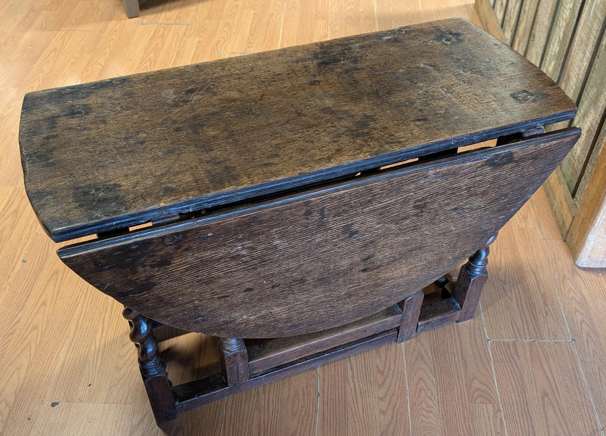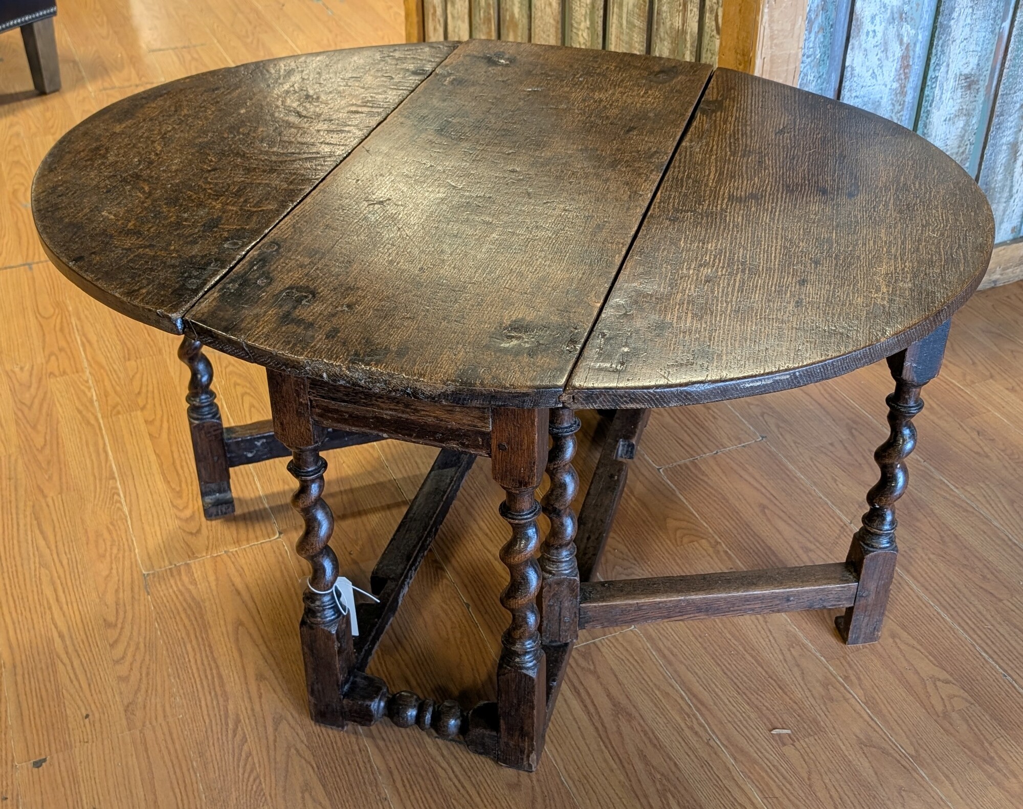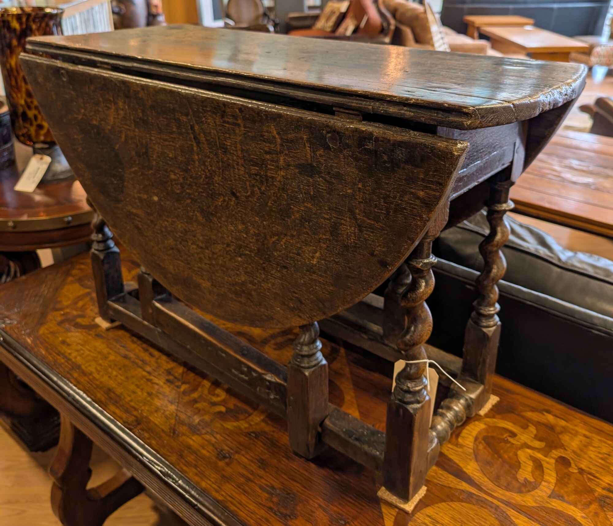 Barely Twist Gateleg, English, 18th Century 35w x 16-42w x 23h