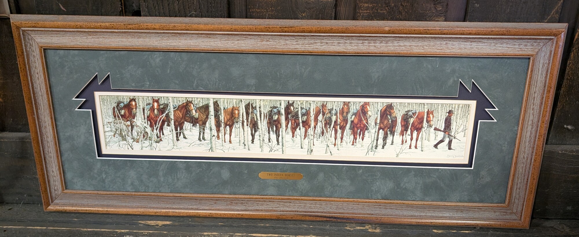 Bev Doolittle 2 Indian, Horses, Print 34 x 13.5h