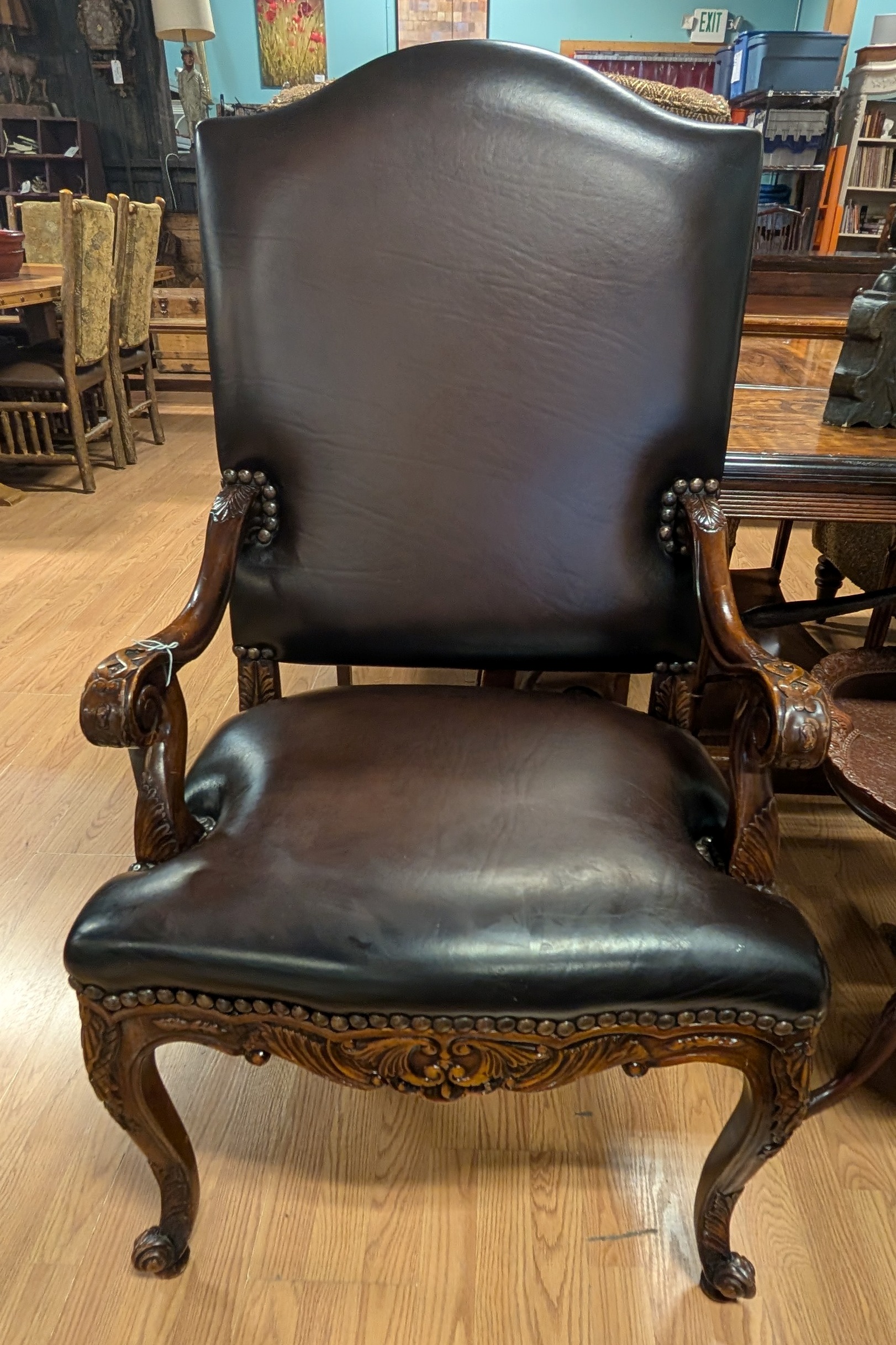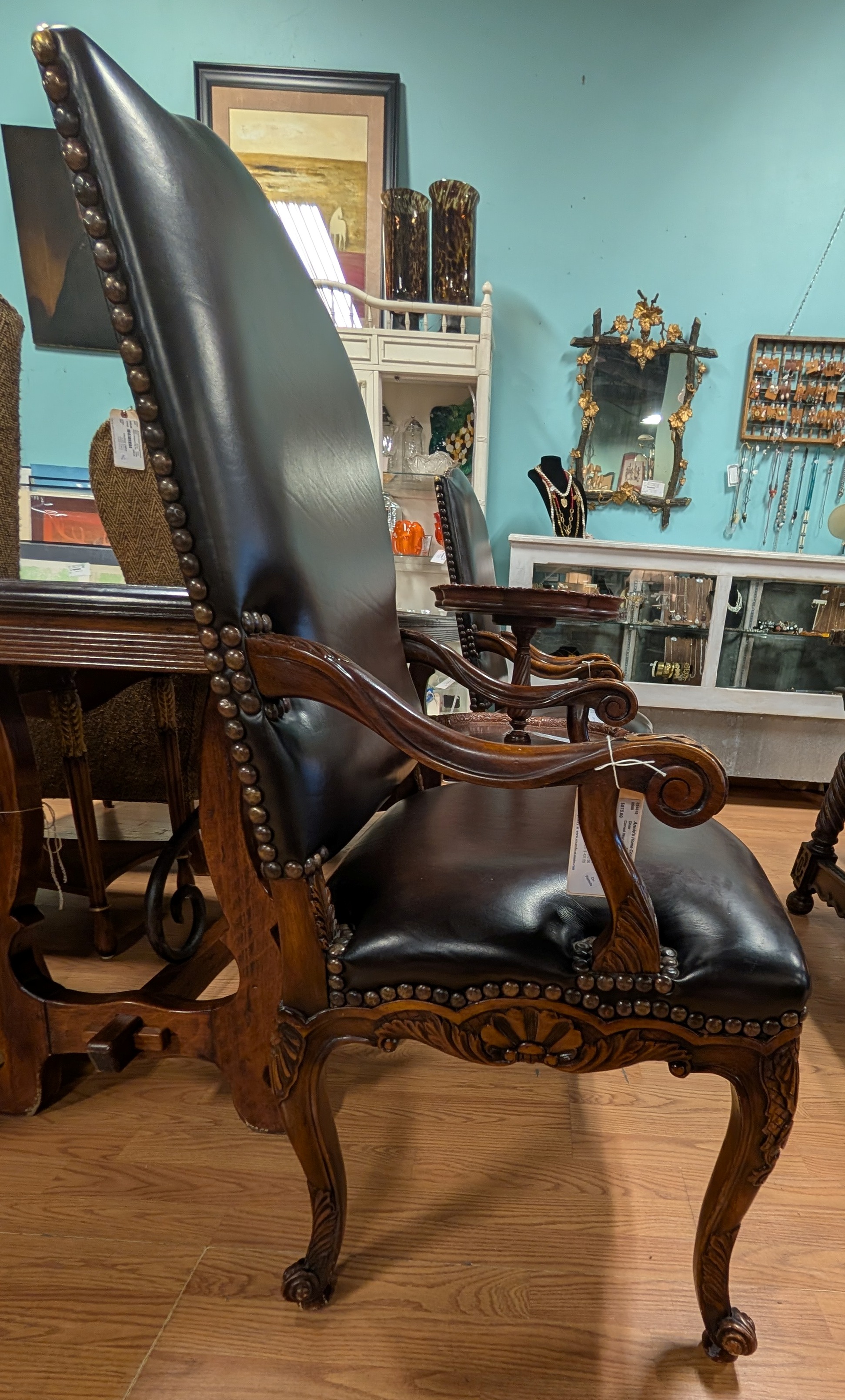 Carved Wood & Leather, Brown, Studs 24 x 21 x 45