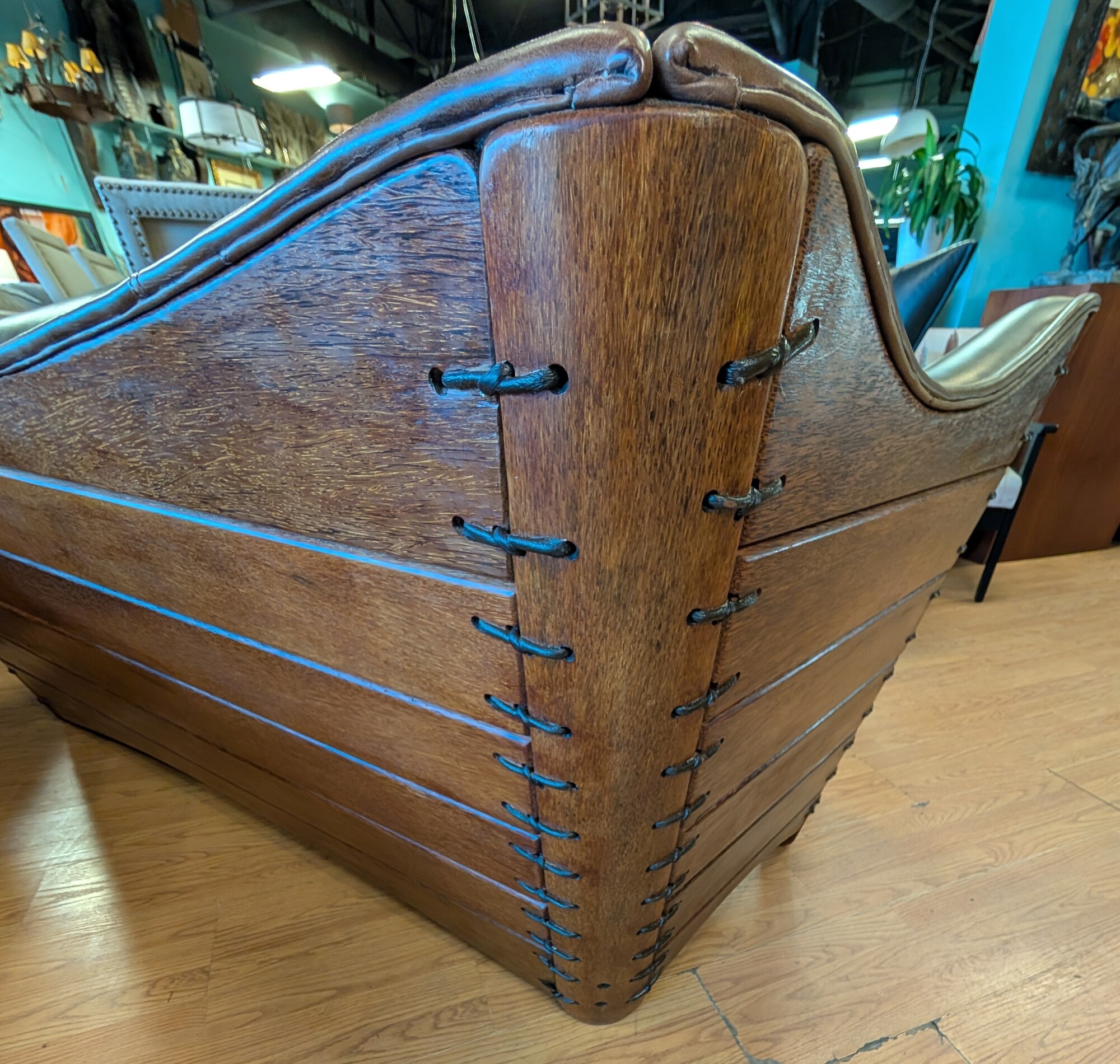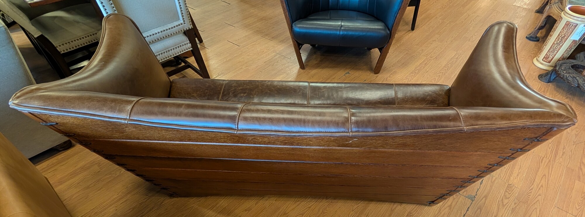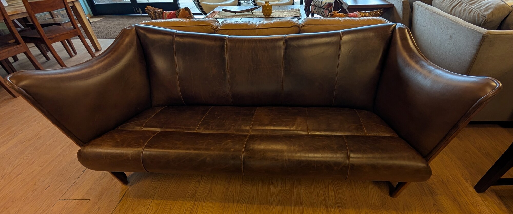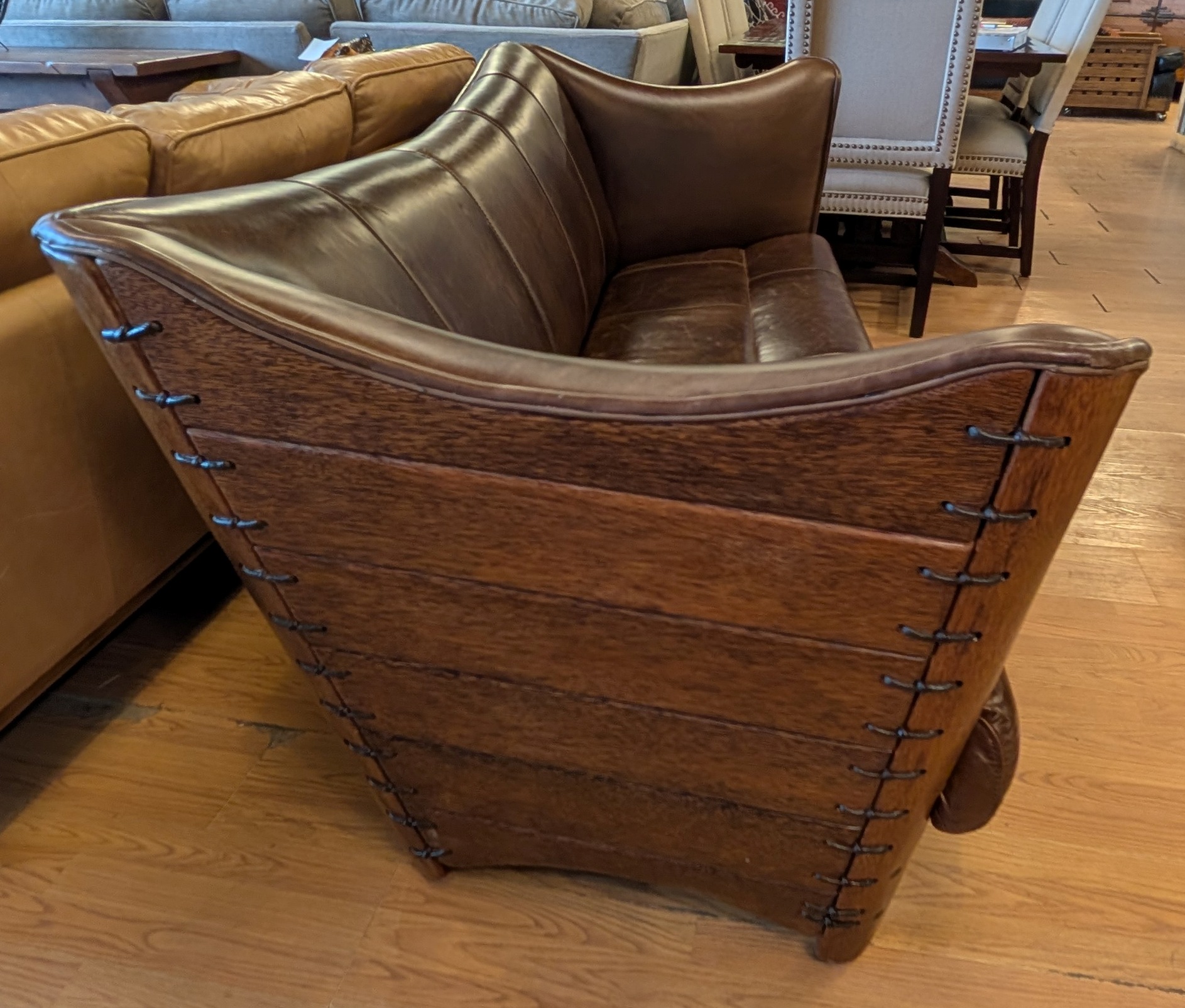 Cayenne Leather Sofa, Palm Wood Sides and Back, Cocoa Brown 80 x 31 x 32h
