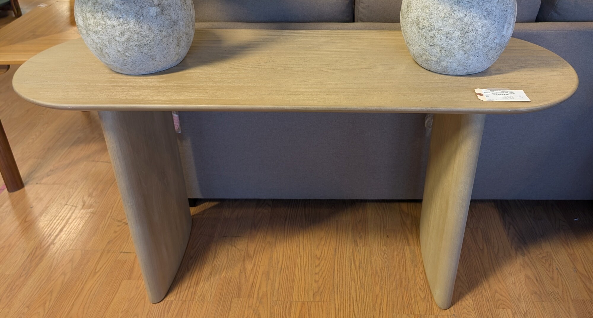 Contemporary Sofa Table, Natural Wood, Rounded 60 x 20 x 30h