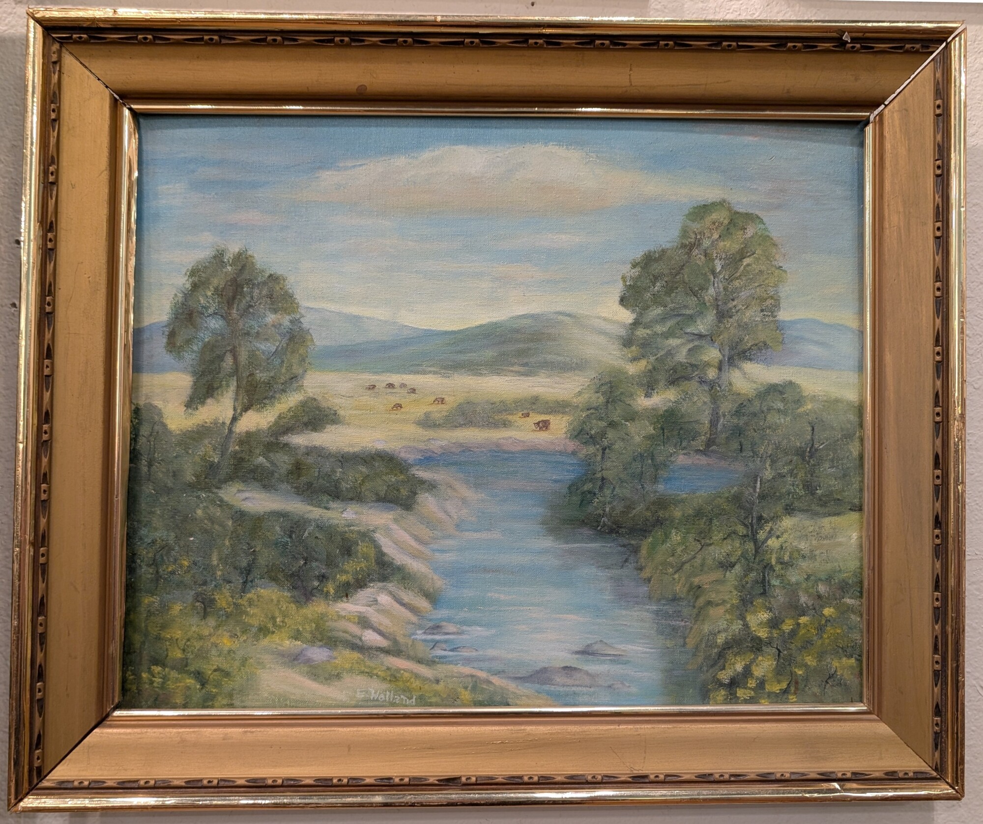 Cows In Pasture Oil, Original, Framed 23.5 x 19.5h