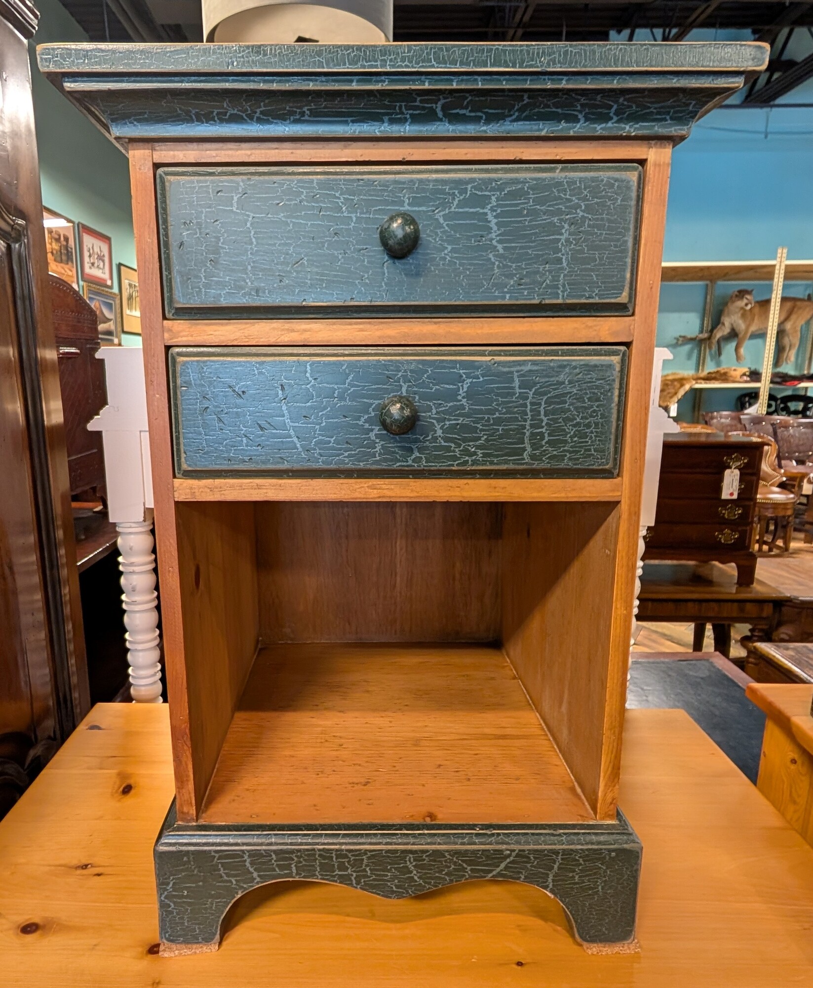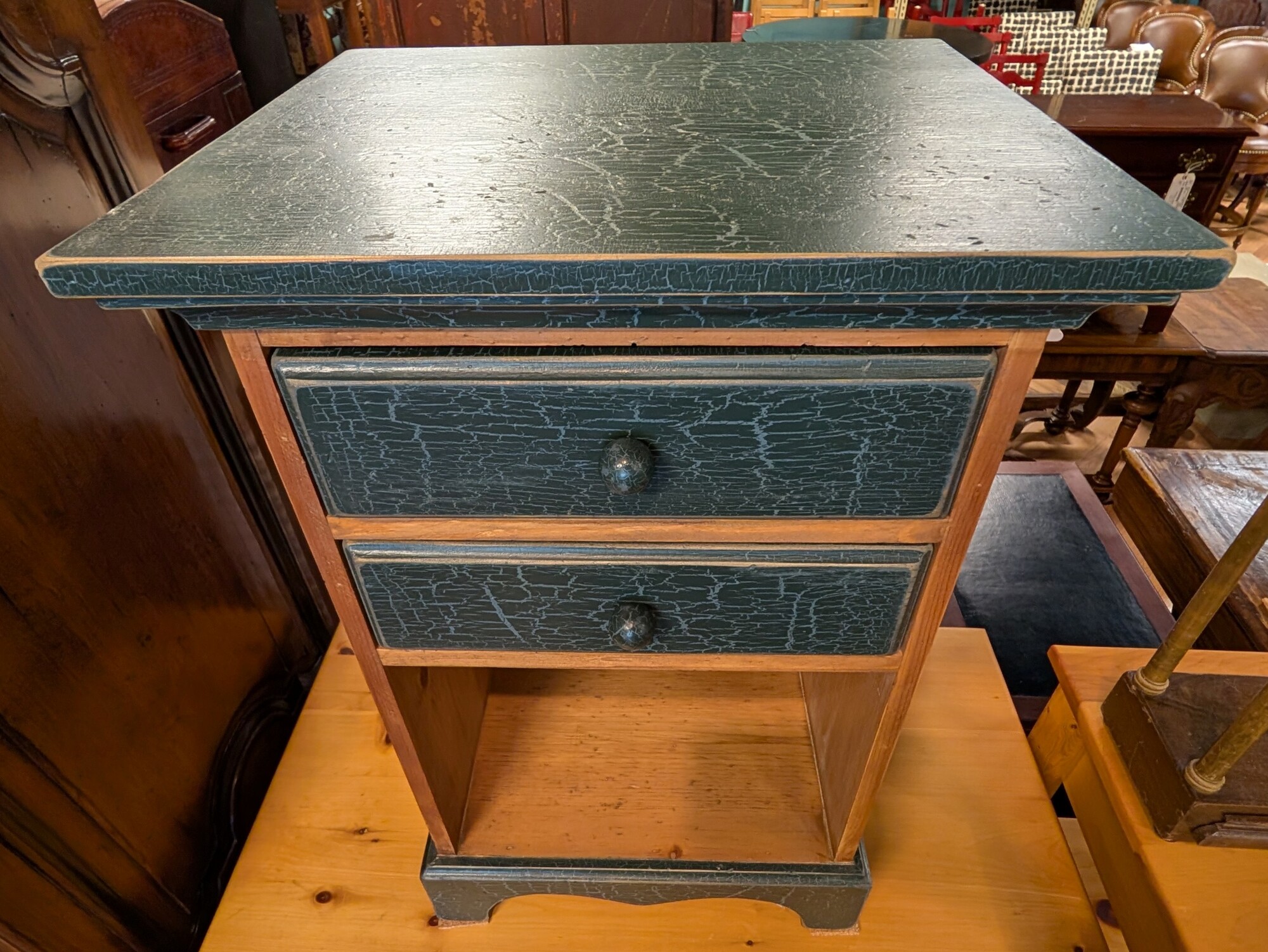 Crackle Painted Side Table, Green, 2 Drawer 20 x 17.5 x 30h