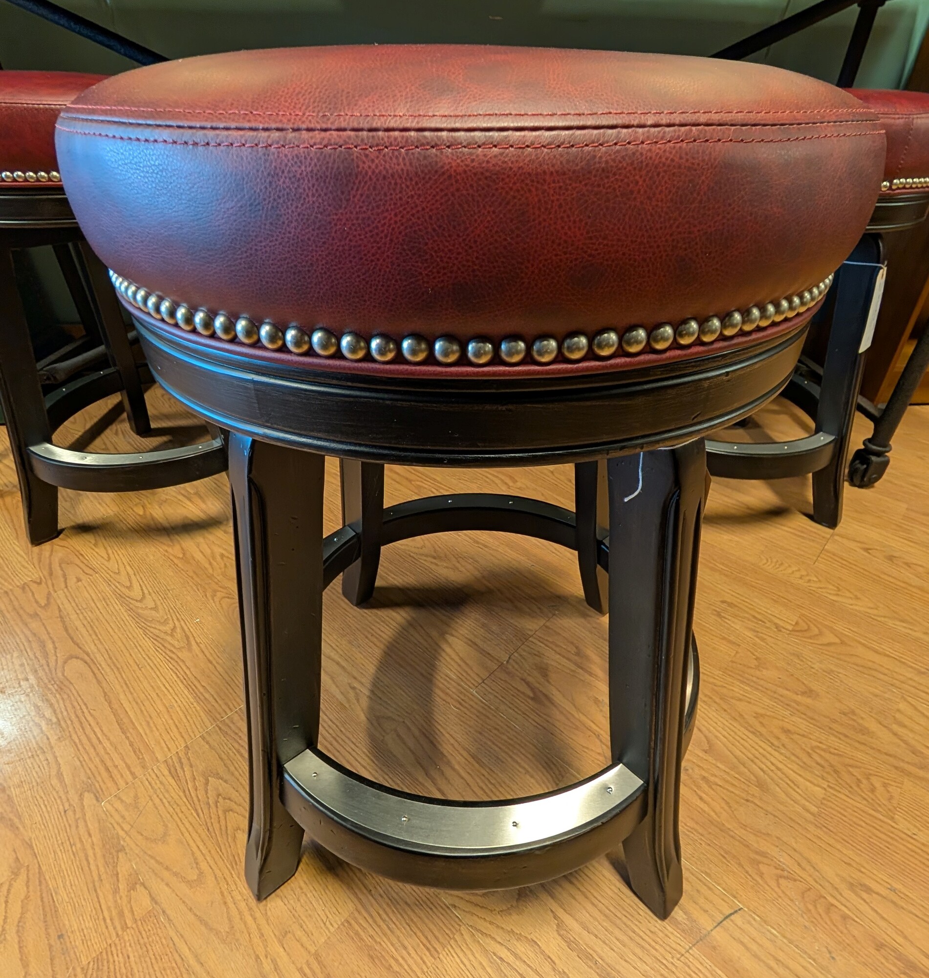 Darafeev Swivel Counter Stool W/Studs, Red Leather 18 Round x 26h