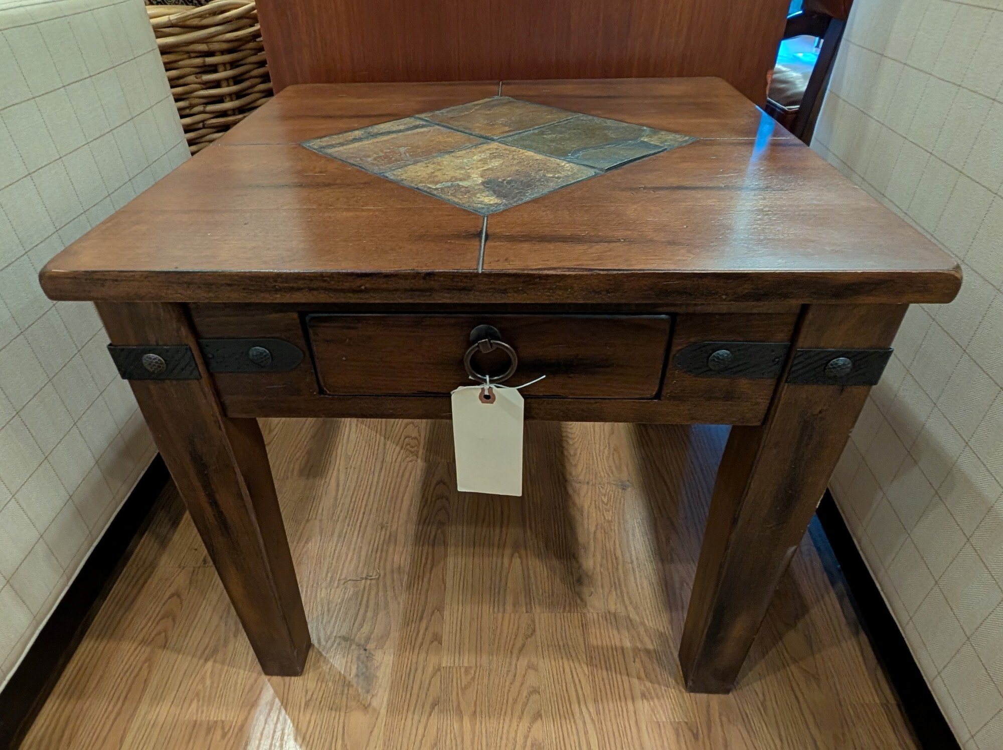 Diamond Slate Mission Side Table, Square, Drawer 25 x 25 x 23h