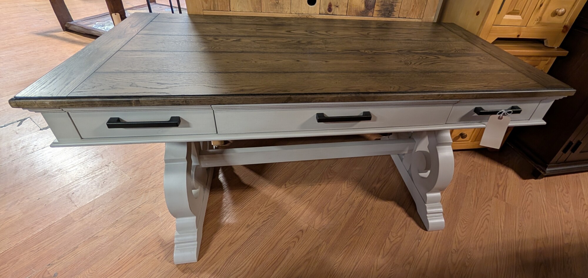 Drake Home Wood Top, Light Grey, Light Taupe Wood, 3 Drawer 59.5 x 28 x 31h