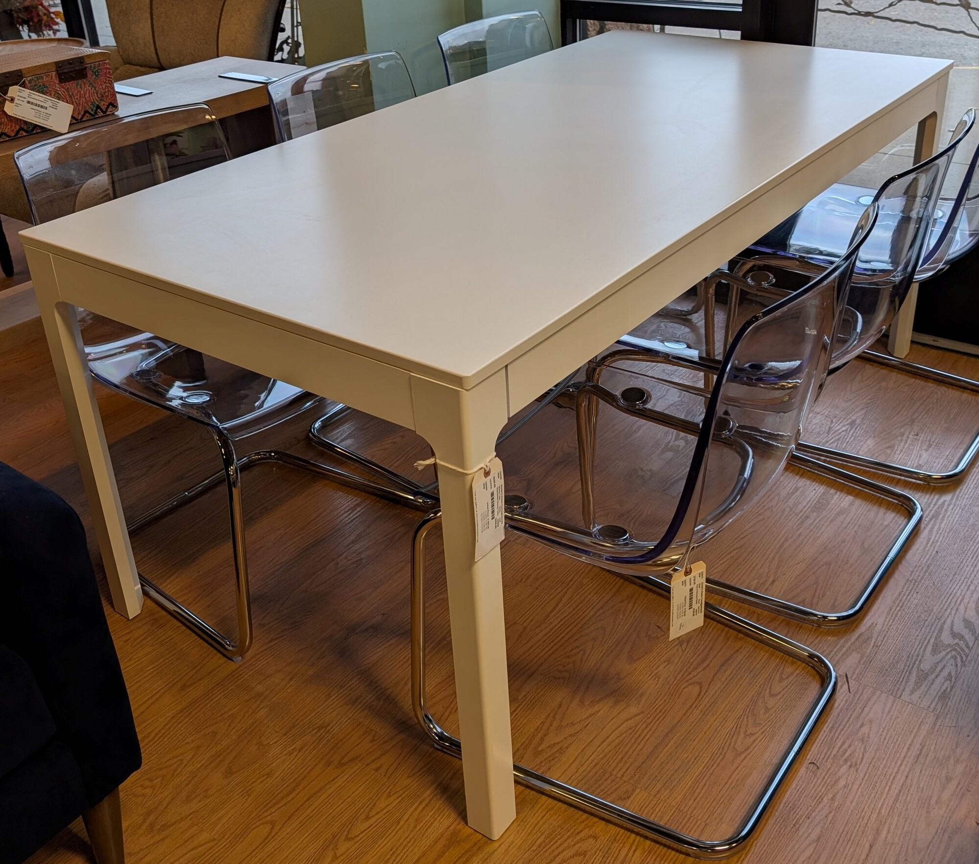 Extendable Dining Table, White, Leaf 35.5 x 71 Leaf 23.5