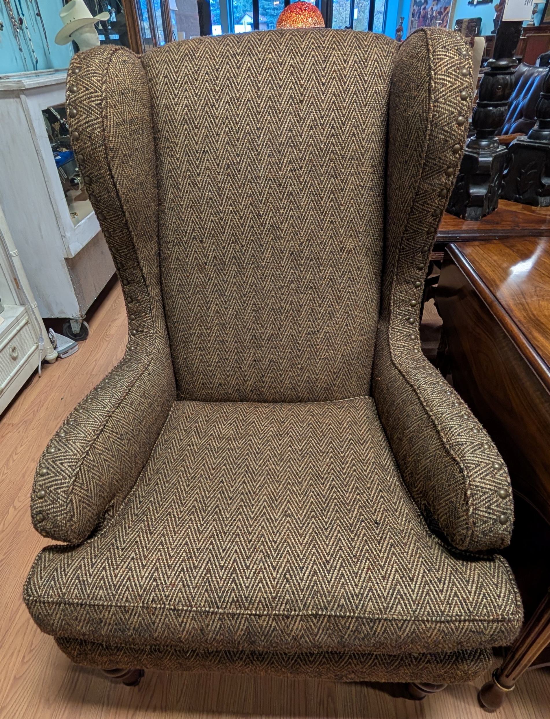 Fabric Wingback Zig Zag, Brown / Green 32 x 32 x 47h
