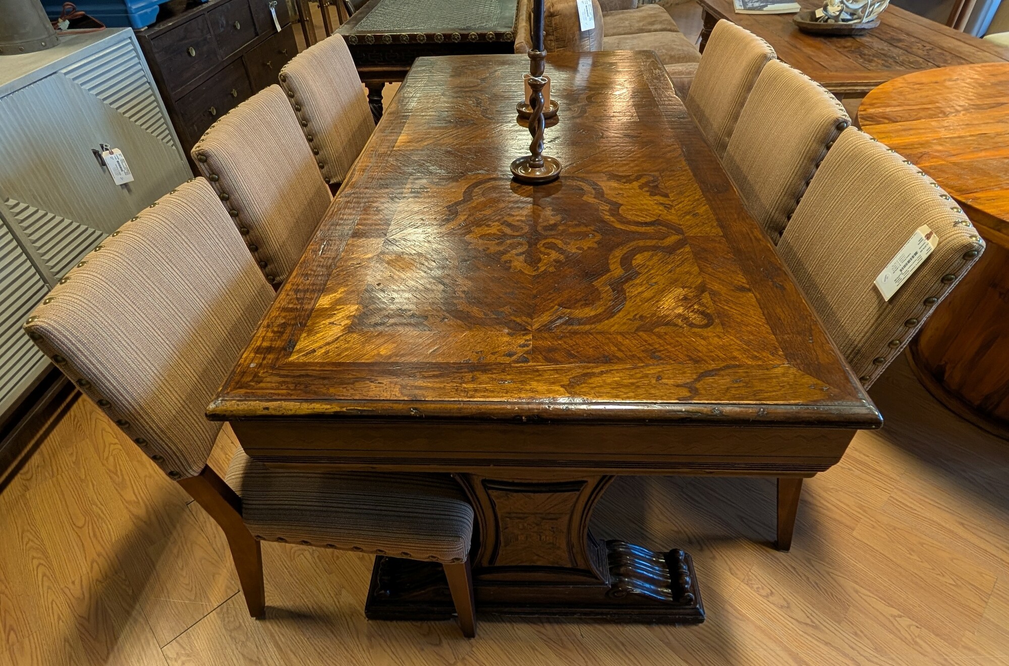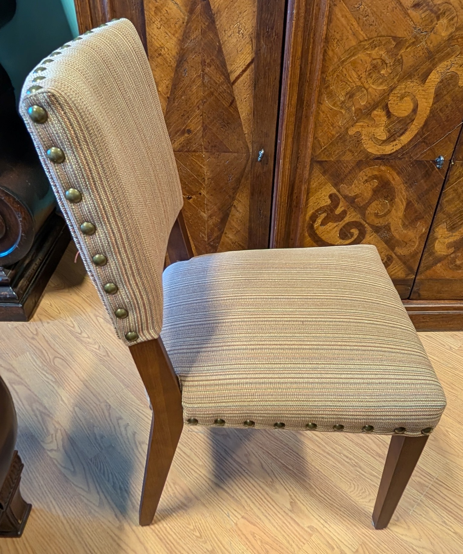 Four Hand Fabric Dining, Stripes, Studs 19 x 21 x 35h
