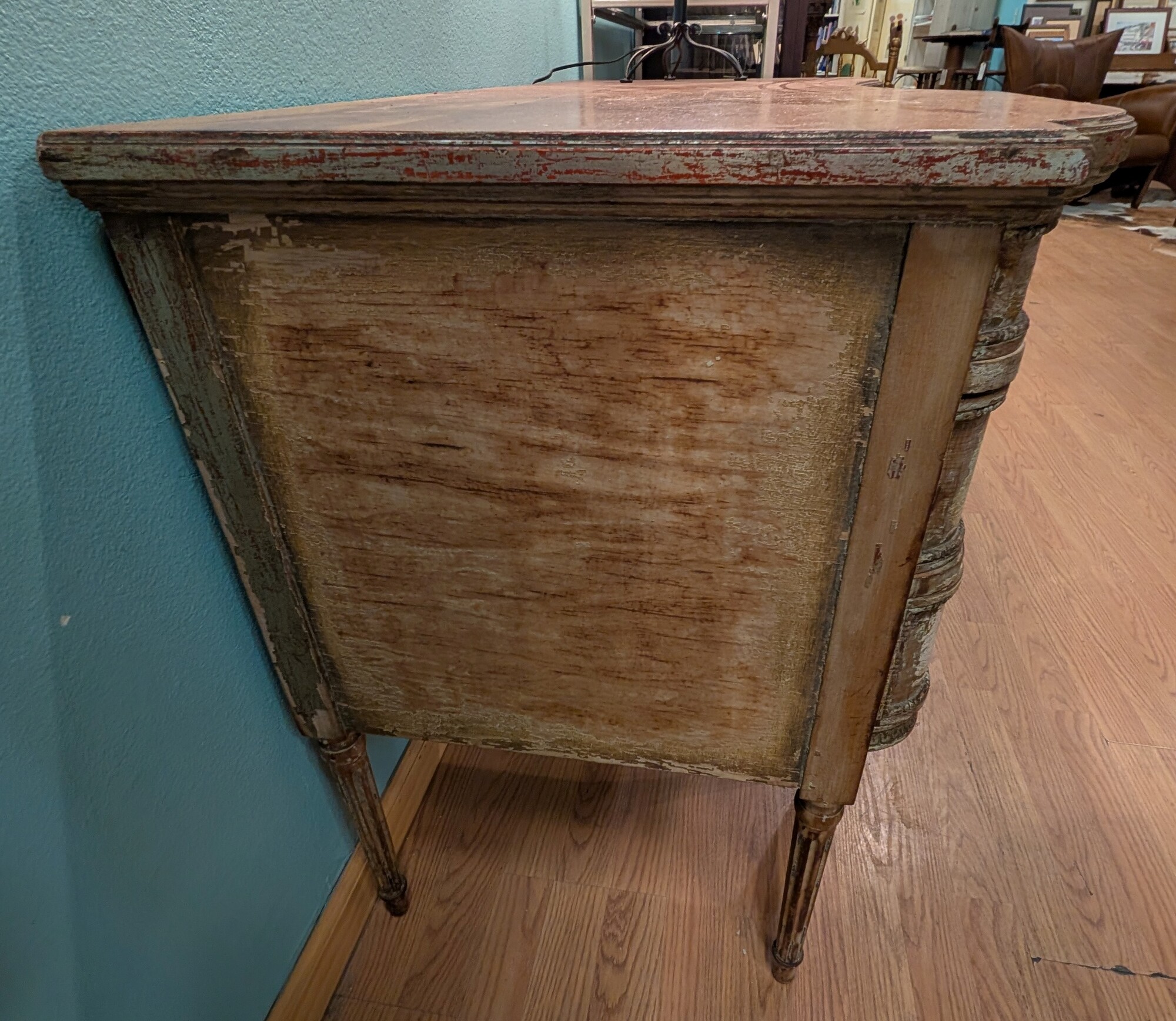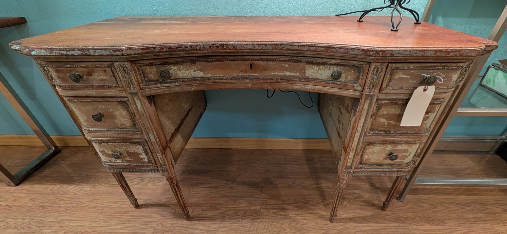 French Shabby Chic Desk, Painted, 7 Drawer 50.5 x 21.5 x 30h