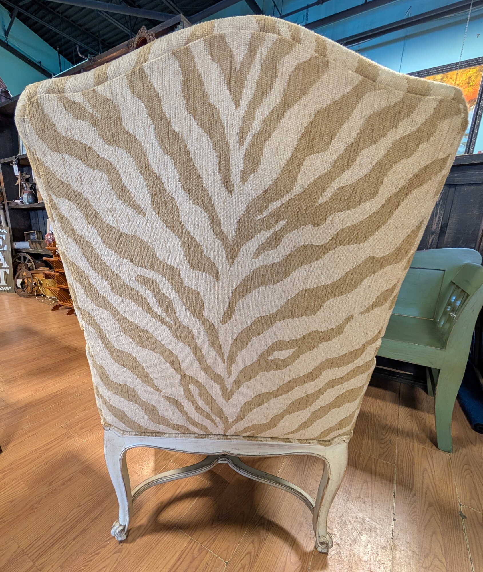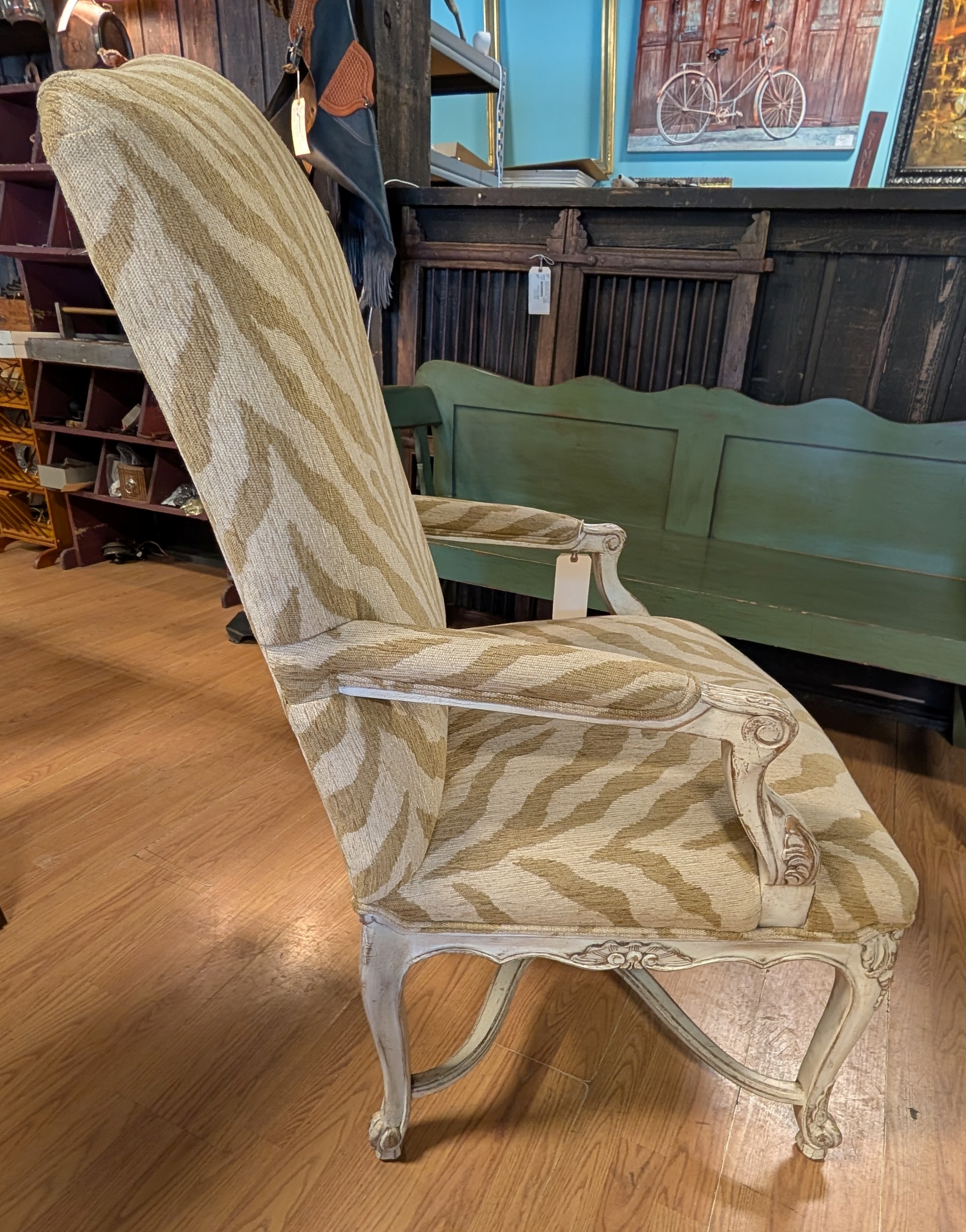 Henredon French Armchair, Zebra, Cream 29 x 27 x 45h Seat Height 19in Arm Height 26.5in