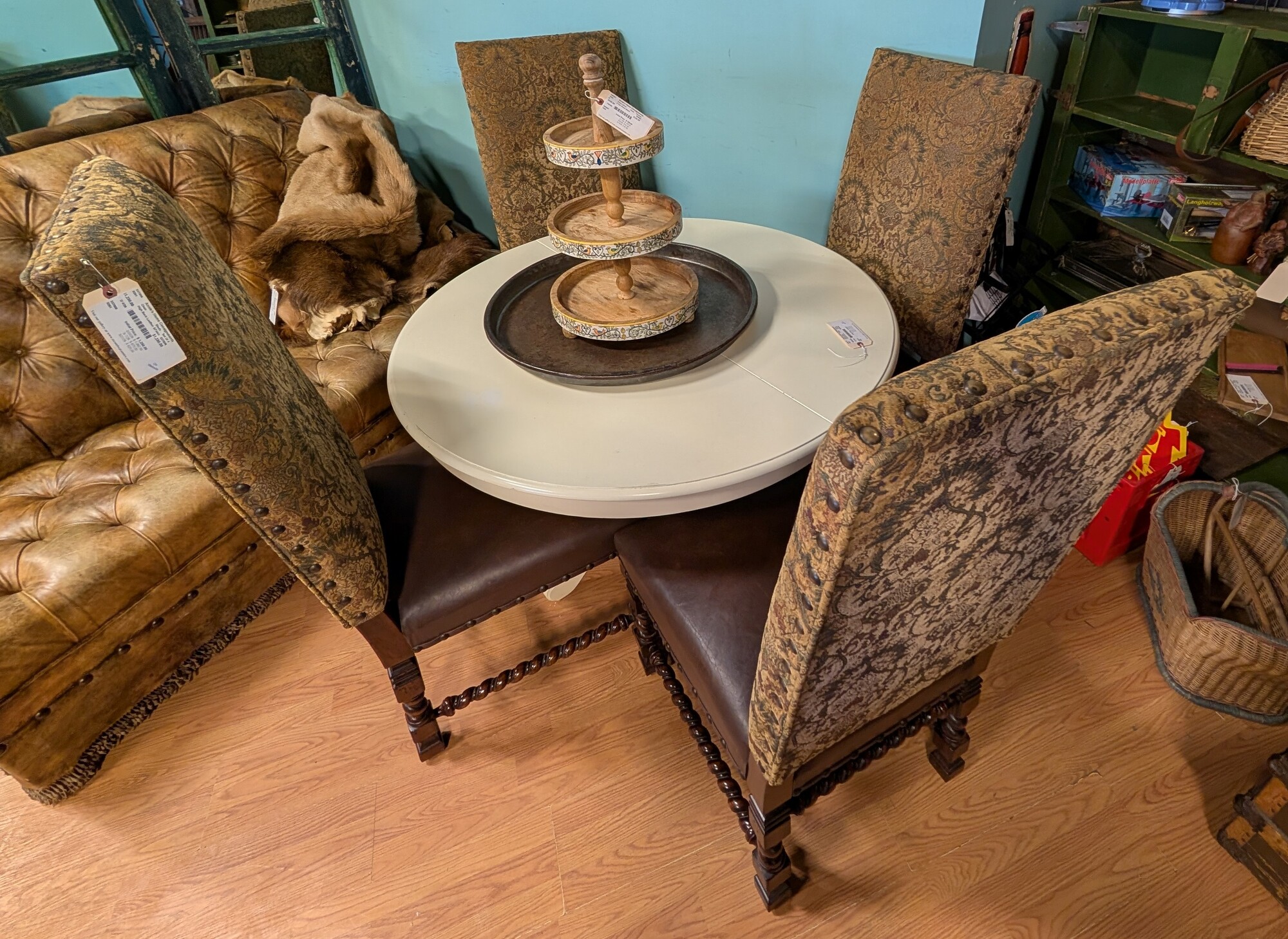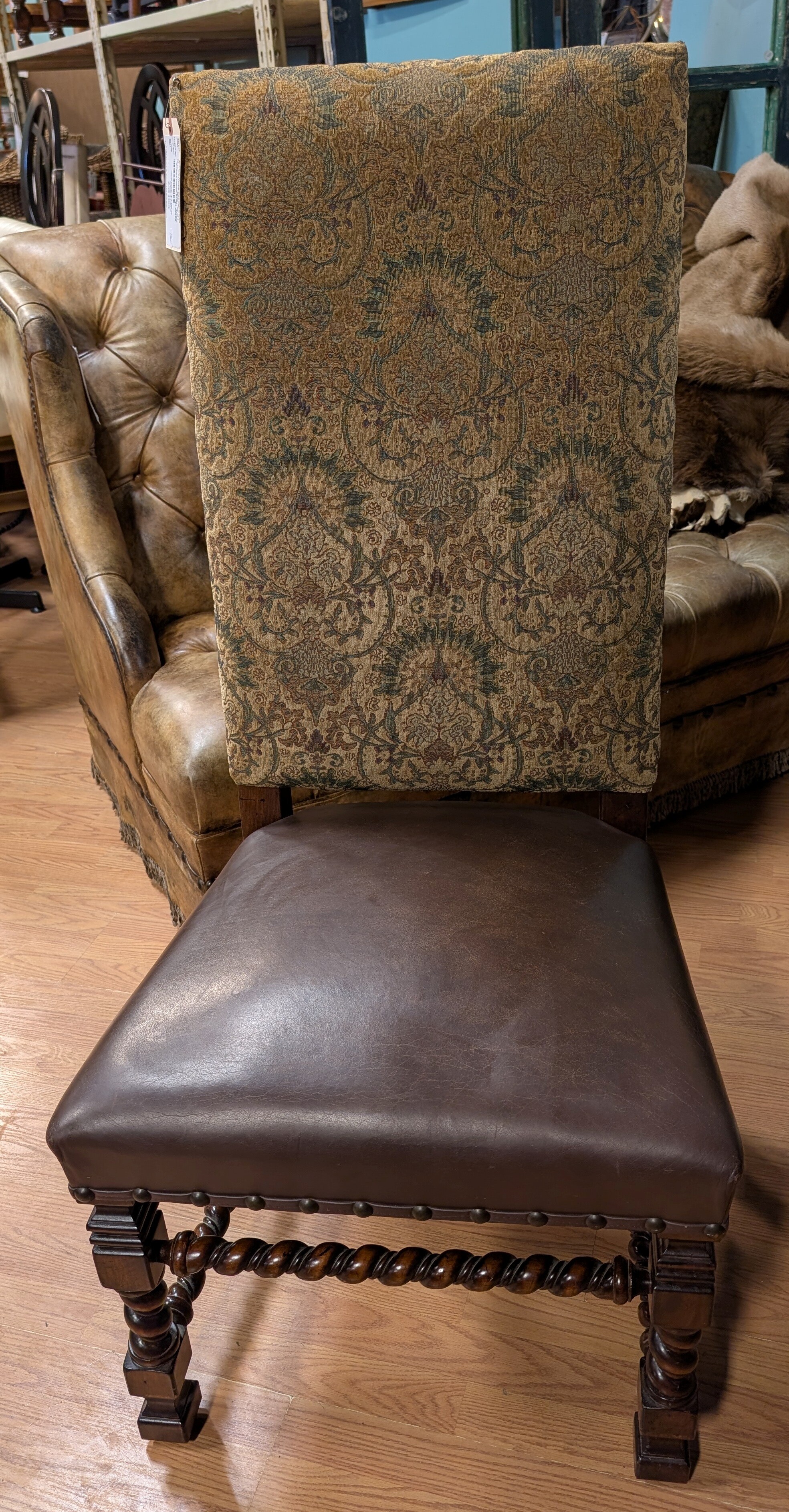 High Back Leather &Fabric, Studs, Set Of 4 24 x 23 x 50h Seat Height 20h