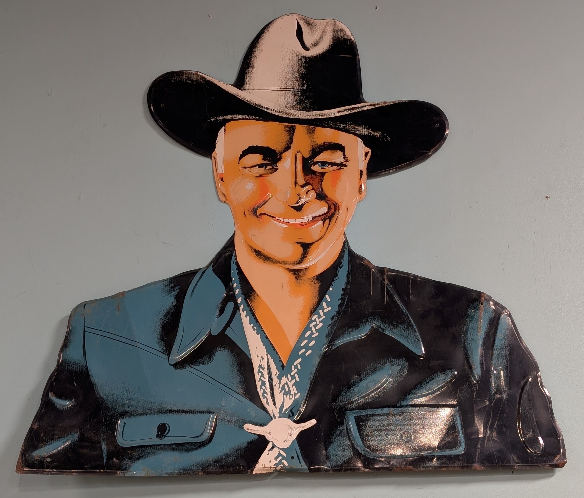 Hopalong Cassidy Tin Sign, Die Cut, Vintage 35 x 34h