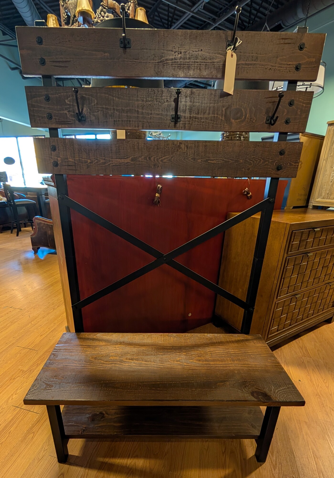 IFD Hall Tree Bench, Gray, Hooks 43 x 18 x 70h