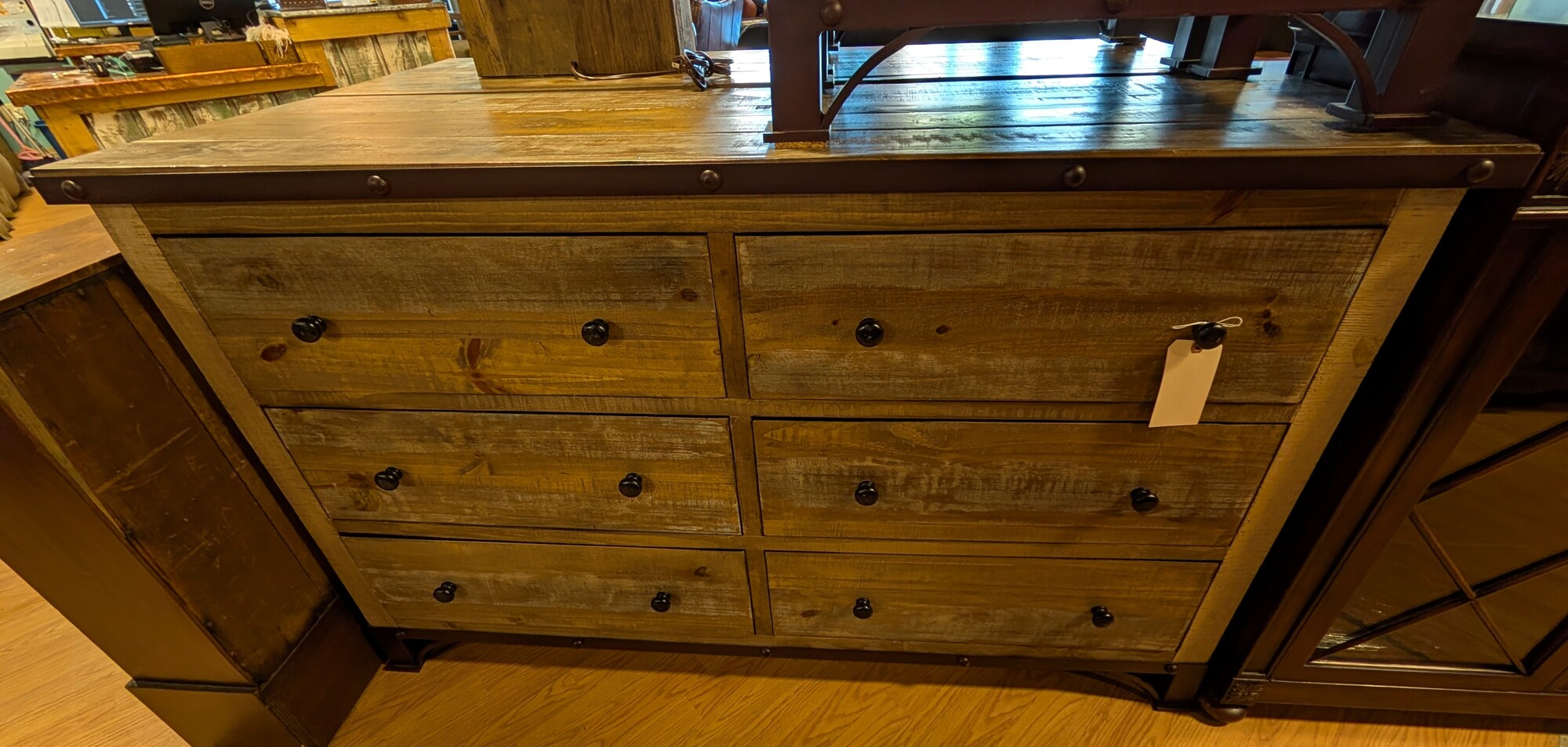 International Furniture Dresser, Multi Stain, 6 Drawer 62 x 18 x 39h