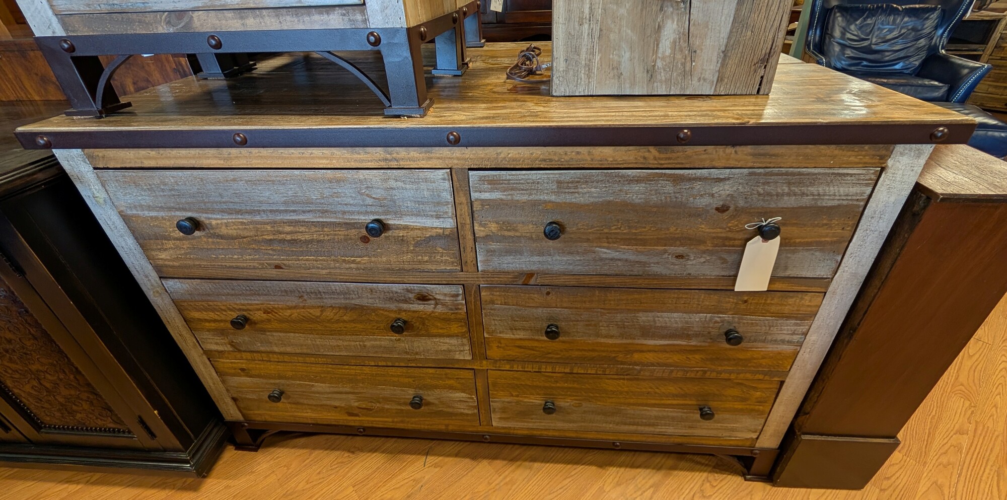 International Furniture Dresser, Multi Stain, 6 Drawer 62 x 18 x 39h