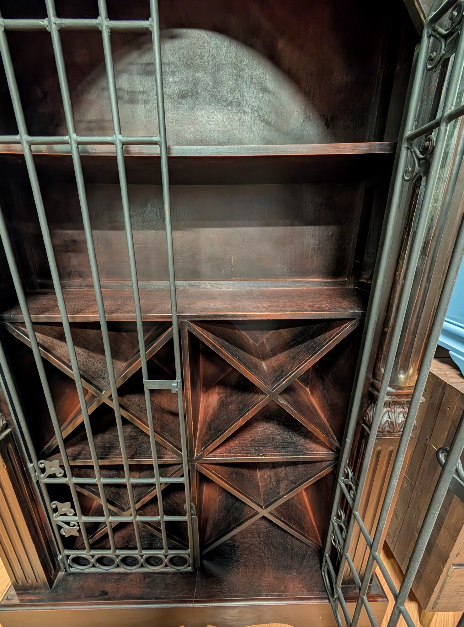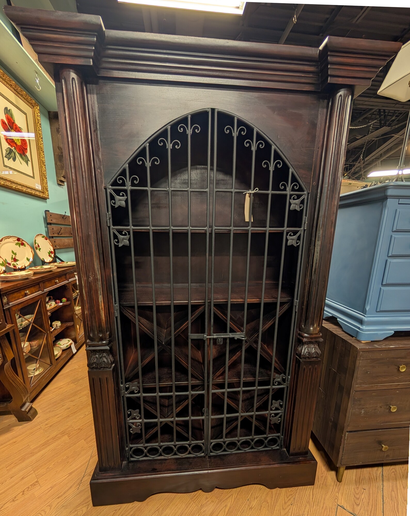 Iron Door Wine Cabinet, Dark Stain, Iron Doors 54 x 18 x 84h