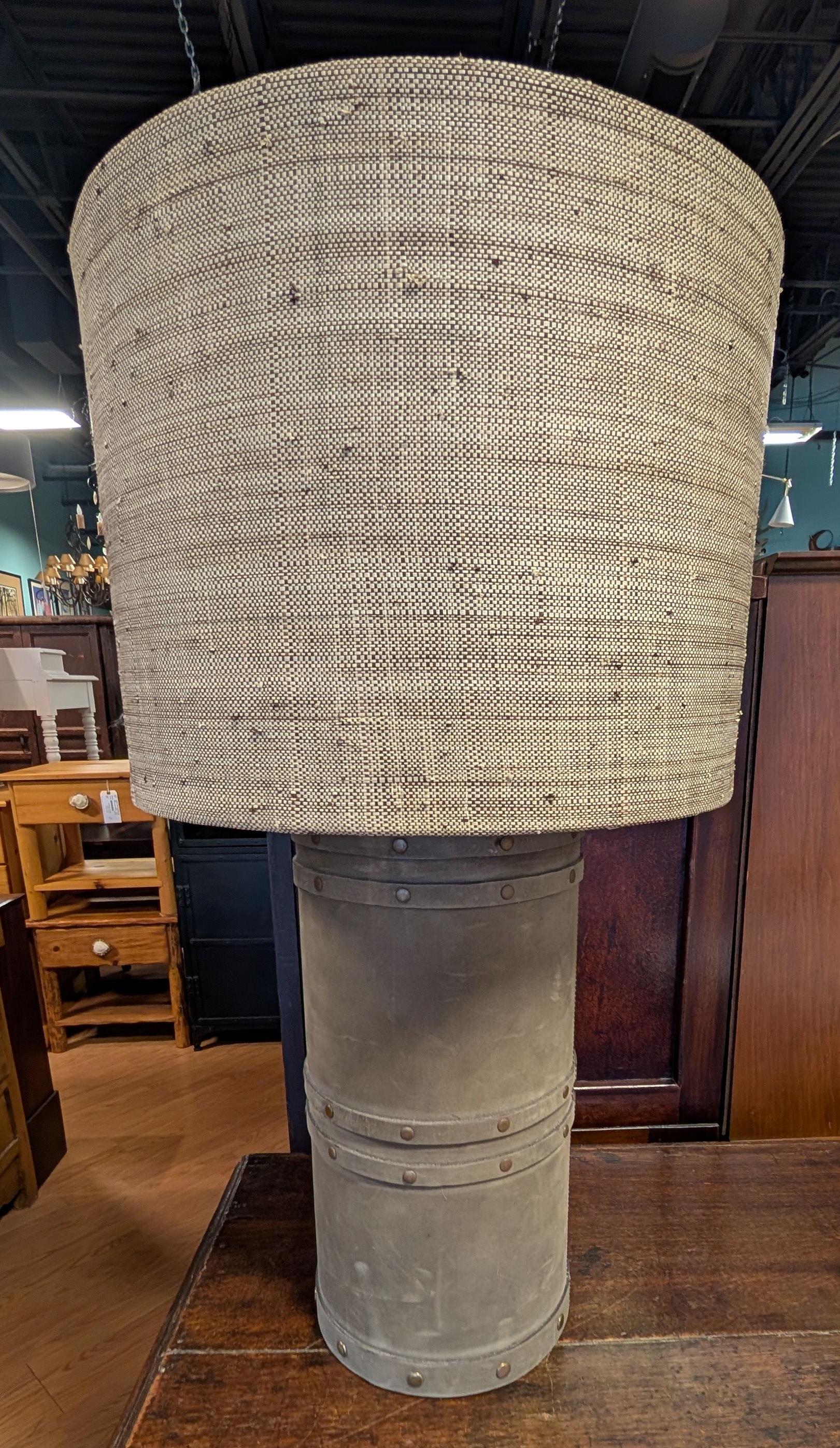 Jamie Young Barrel Table Lamp, Olive Suede 15 x 28h