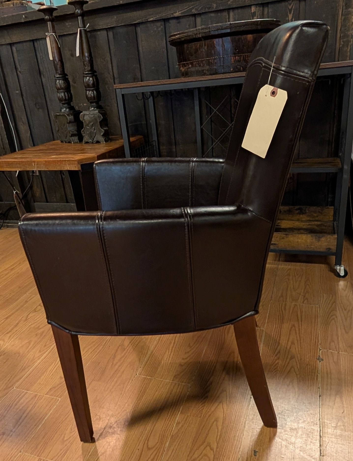 Ken Leather Arm Chair, Brown, Stitched 25 x 22 x 38 Seat Height 19in