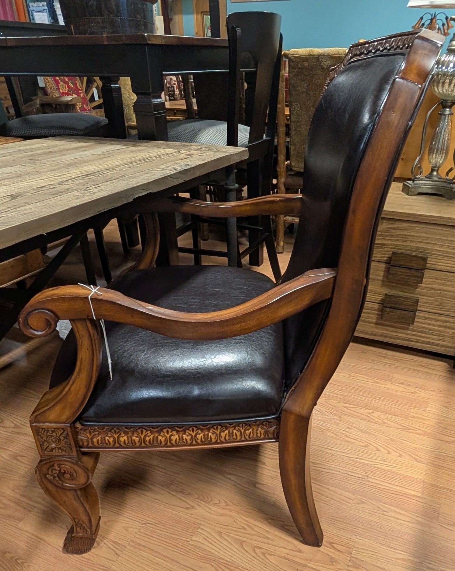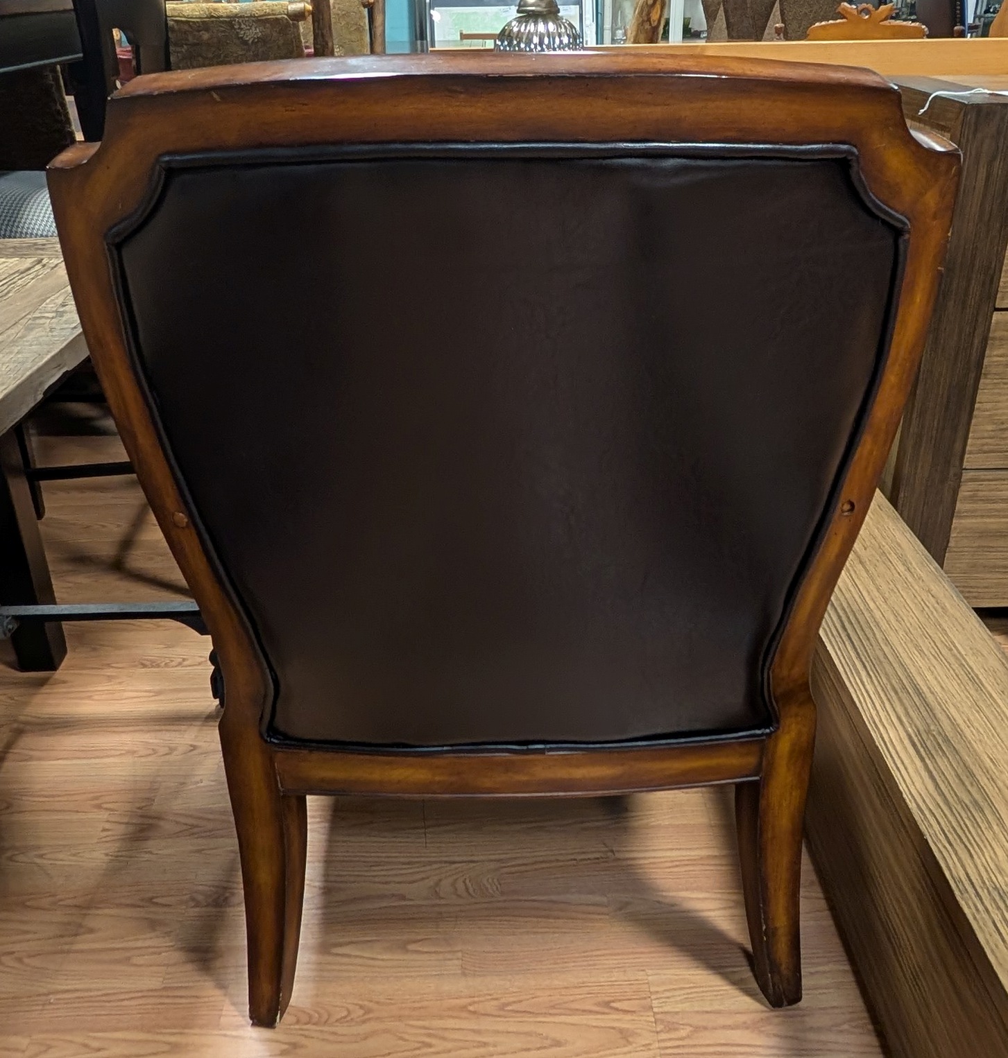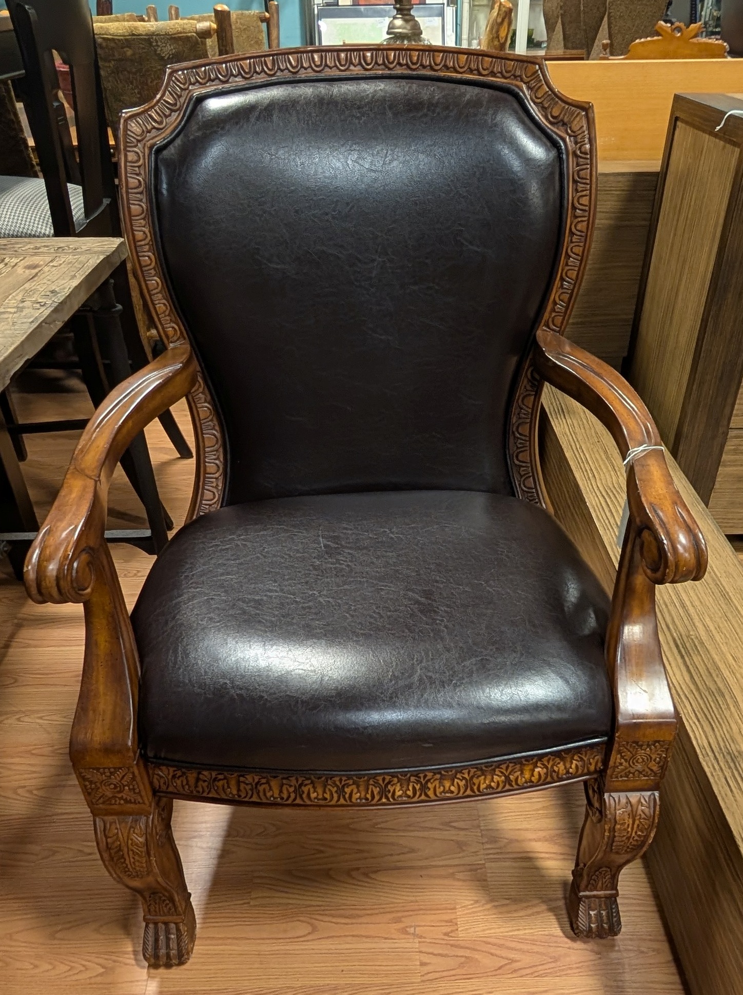 Leather & Carved Wood, Brown 30 x 24 x 41h