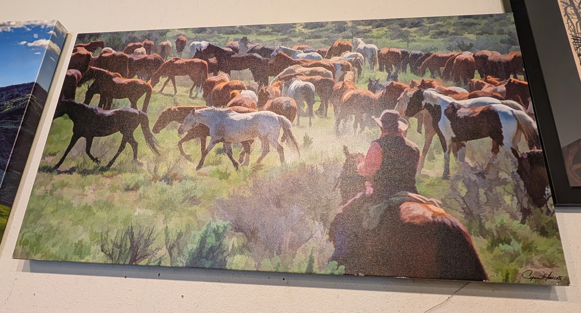 Local Mustang Roundup, Cowboy, Canvas 39 x 22h