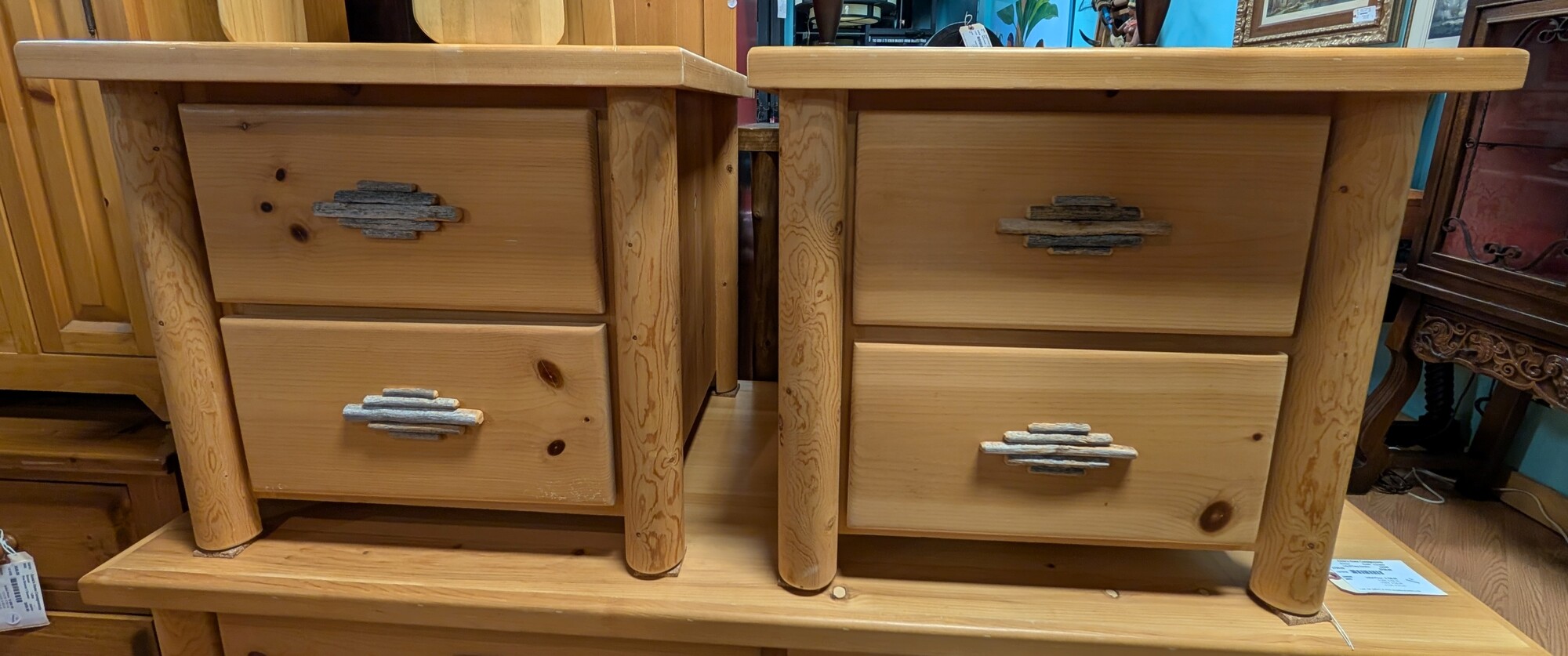 Log W/Twig Handle Sides, *PAIR*, 2 Drawer 26.5 x 25 x 24h
