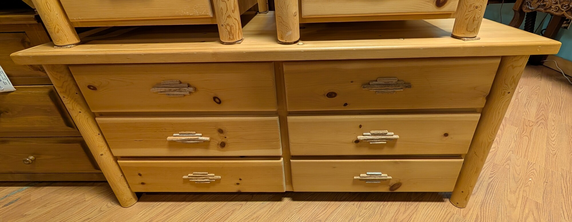 Log W/Twig Handles, Rustic, 6 Drawer 65 x 25 x 30h