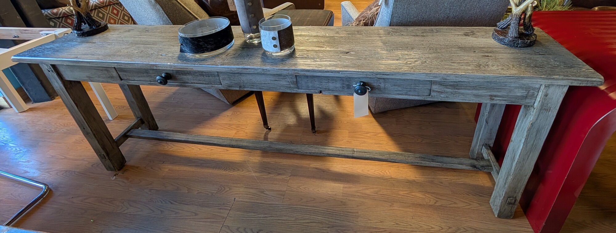 Long Console Table, Gray, 2 Drawers 90 x 15 x 31.5h