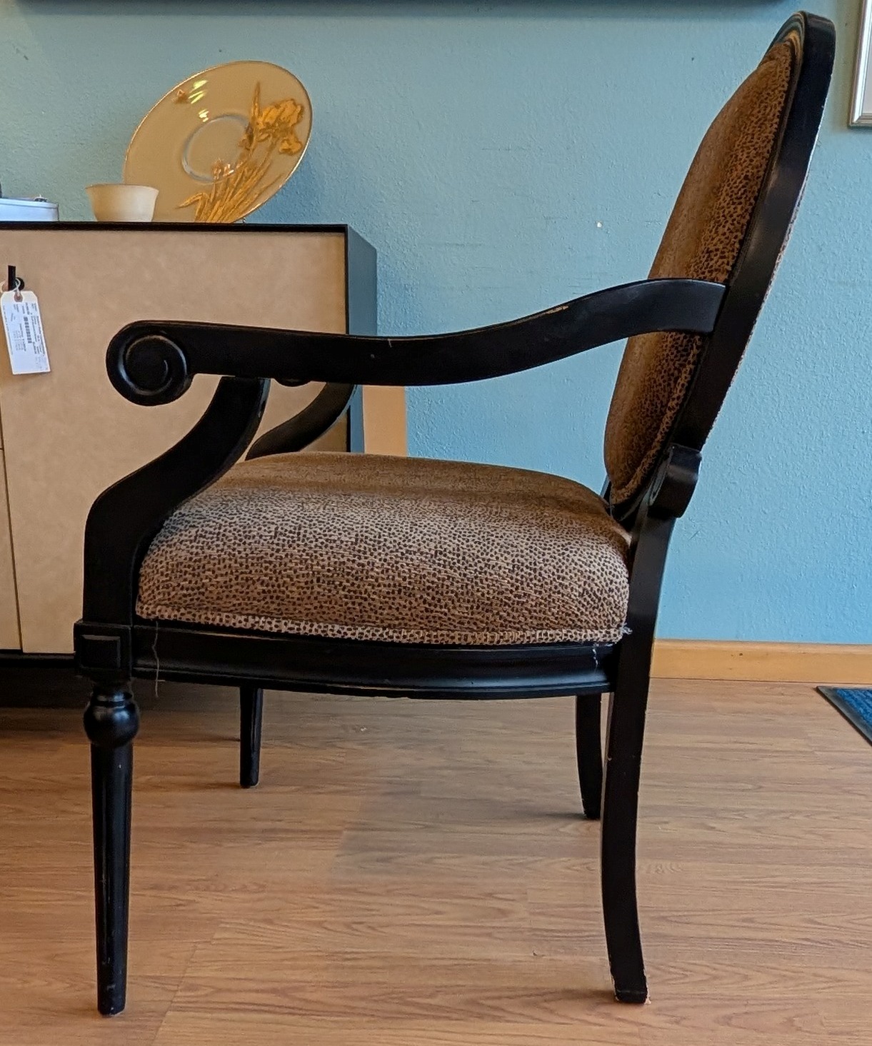 Louis XVI Open Arm, Black / Tan Leopard 27 x 24 x 39h
