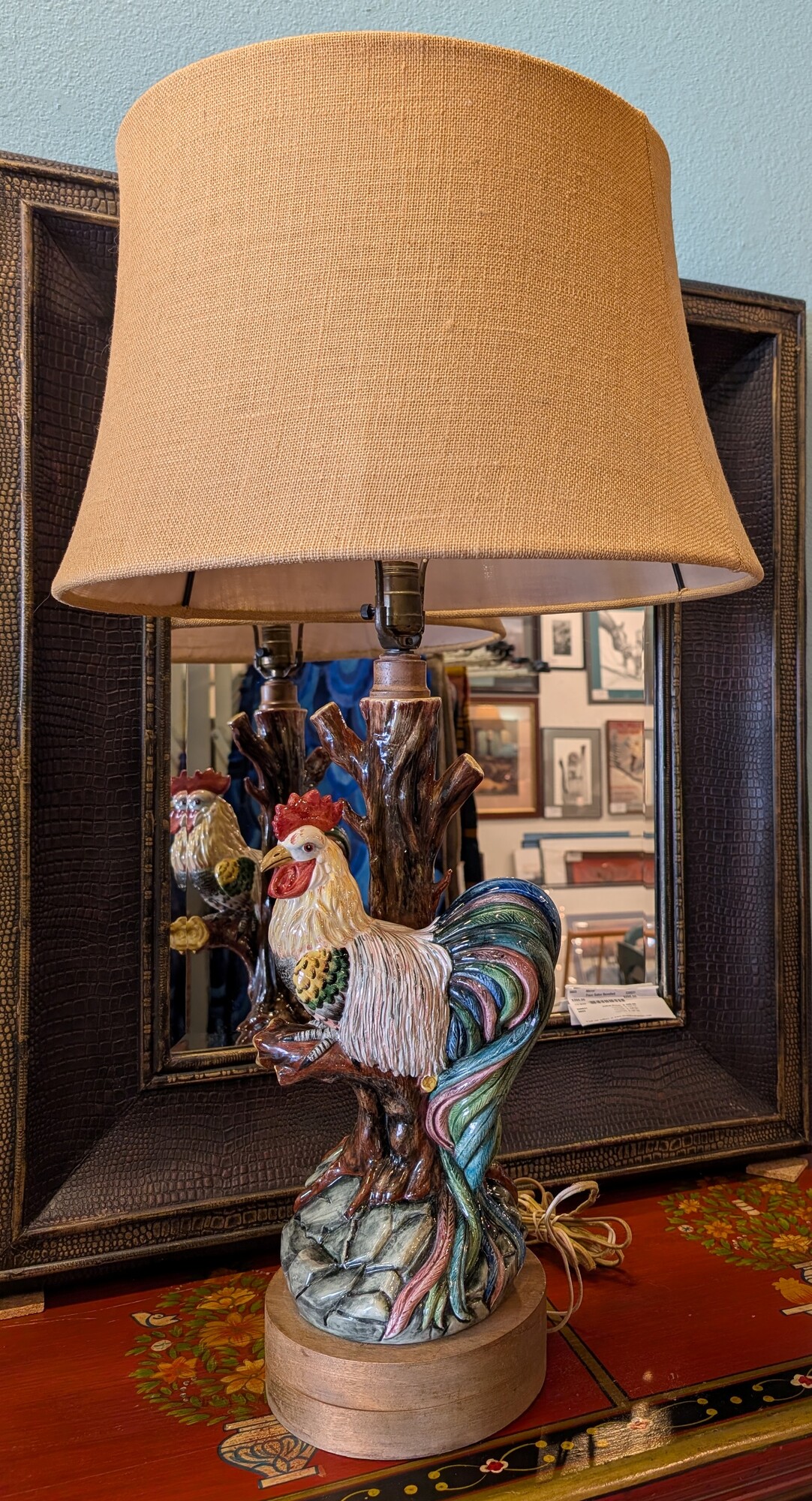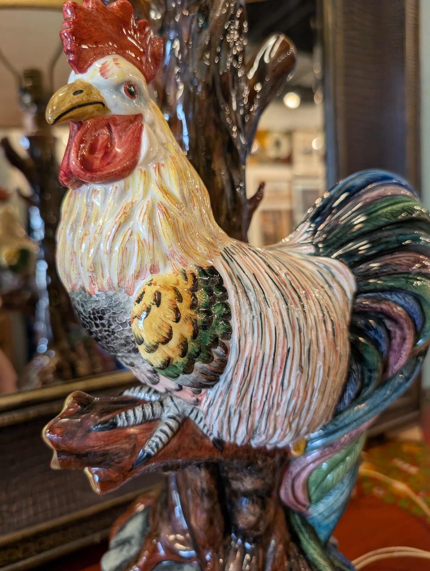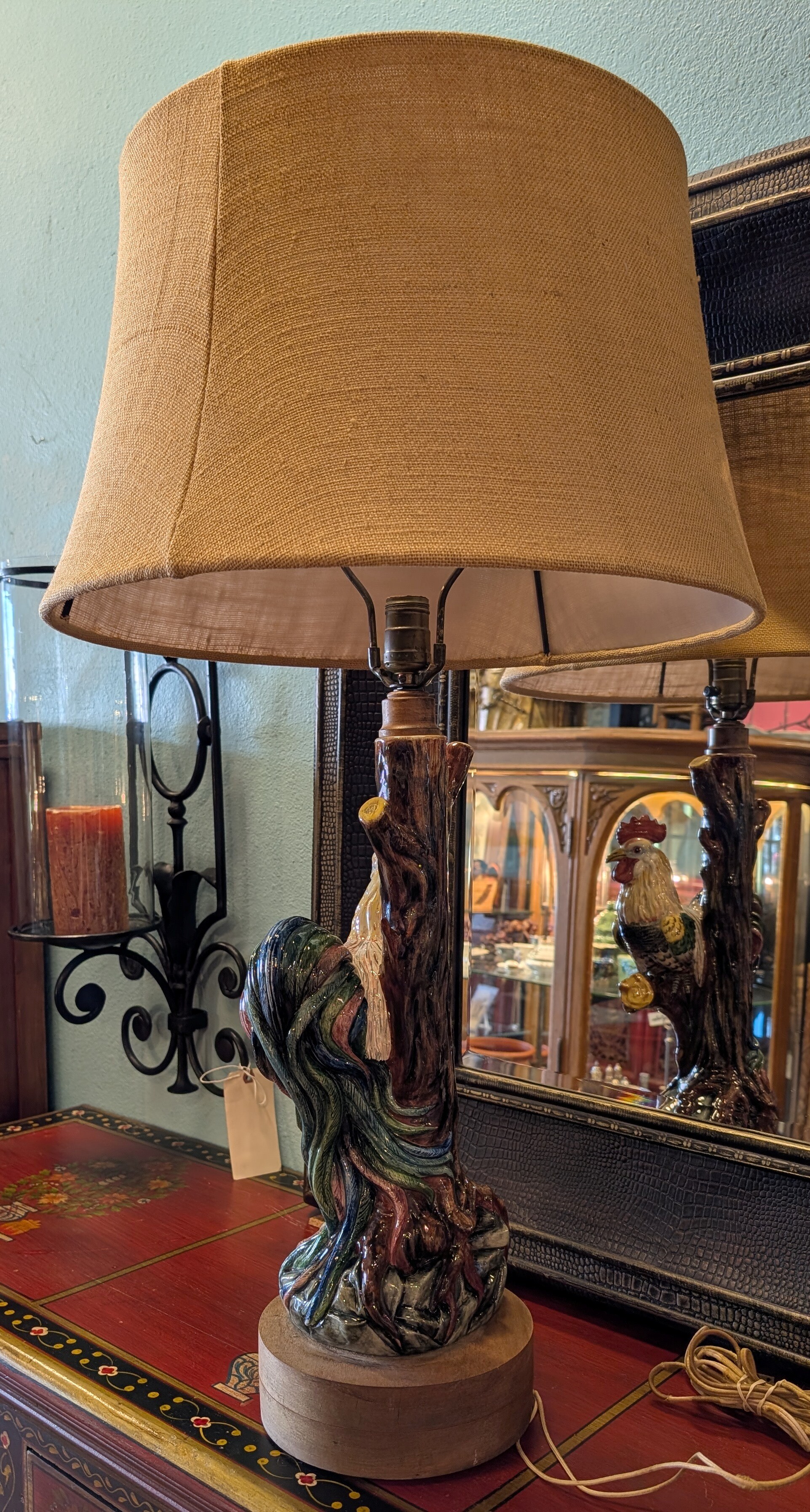 Majolica Rooster Vintage, Italian, Rewire! 19 x 34h