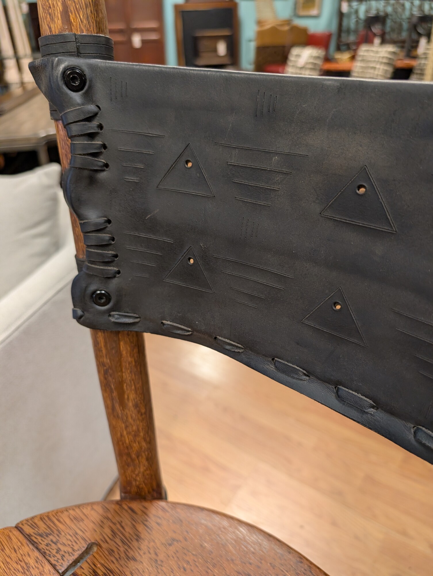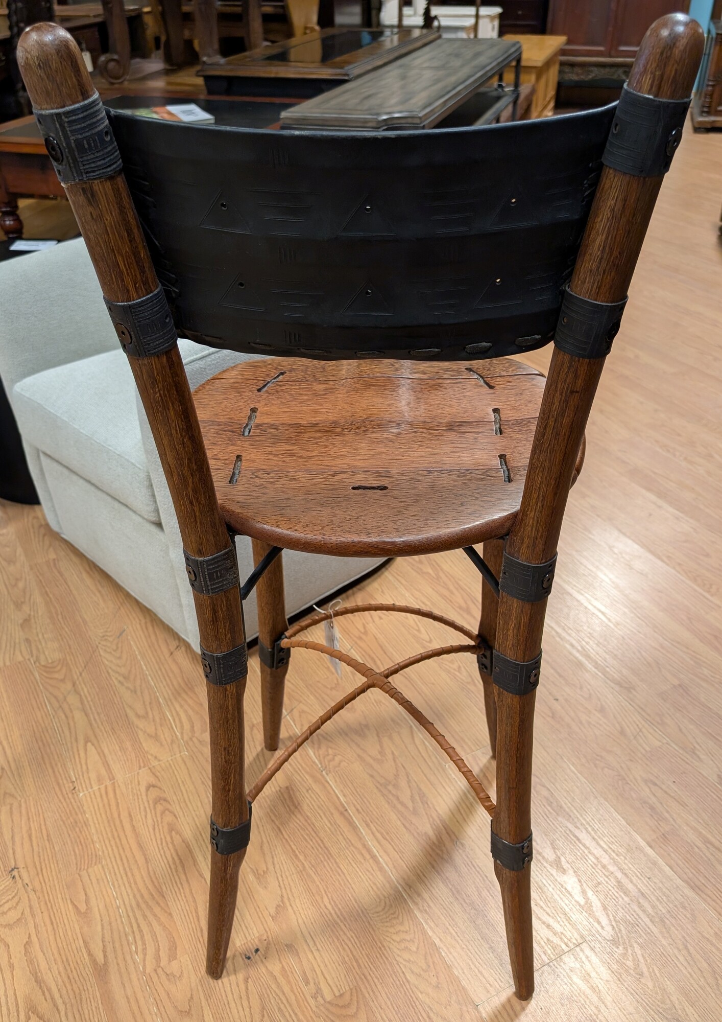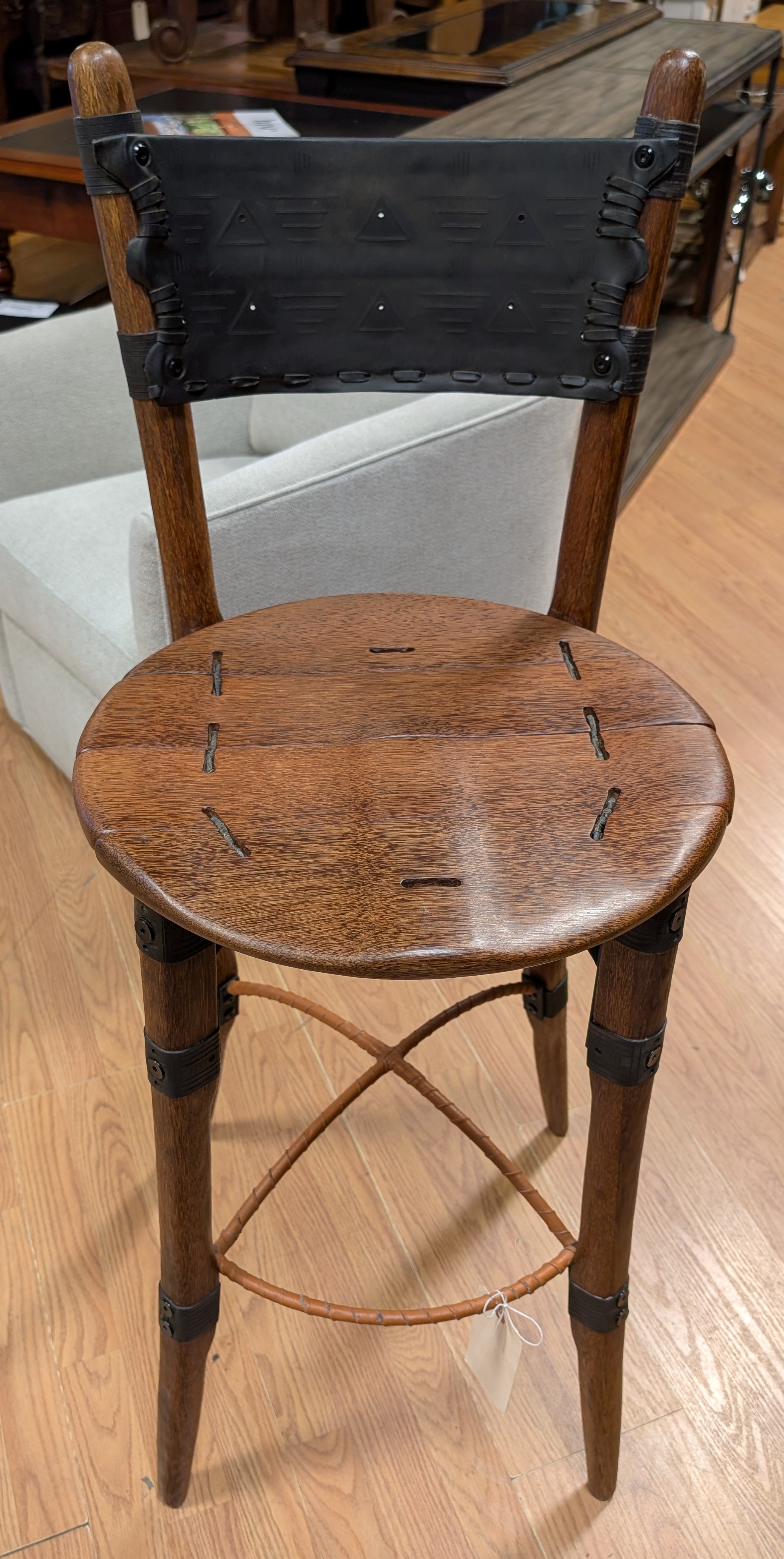 Mauritius Stool SET 2, Blk Leater, Wood Seat 18 x 17 x 44