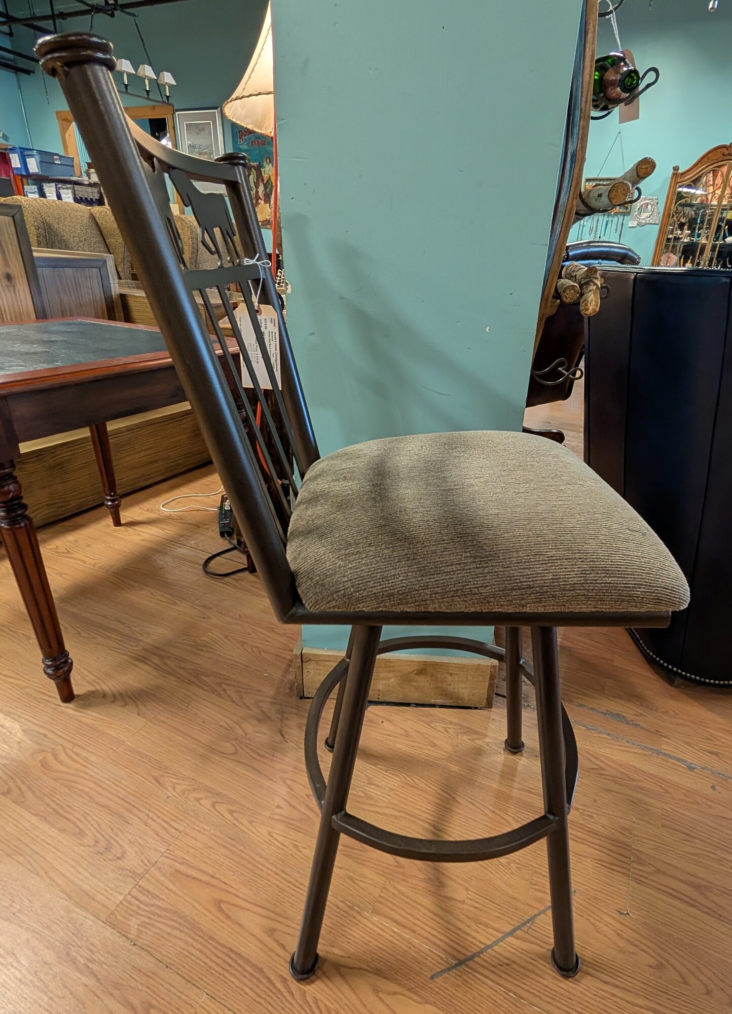 Metal Slat Back Barstools W/Horses, Tan Fabric 18 x 24 x 44h Seat Height 30in
