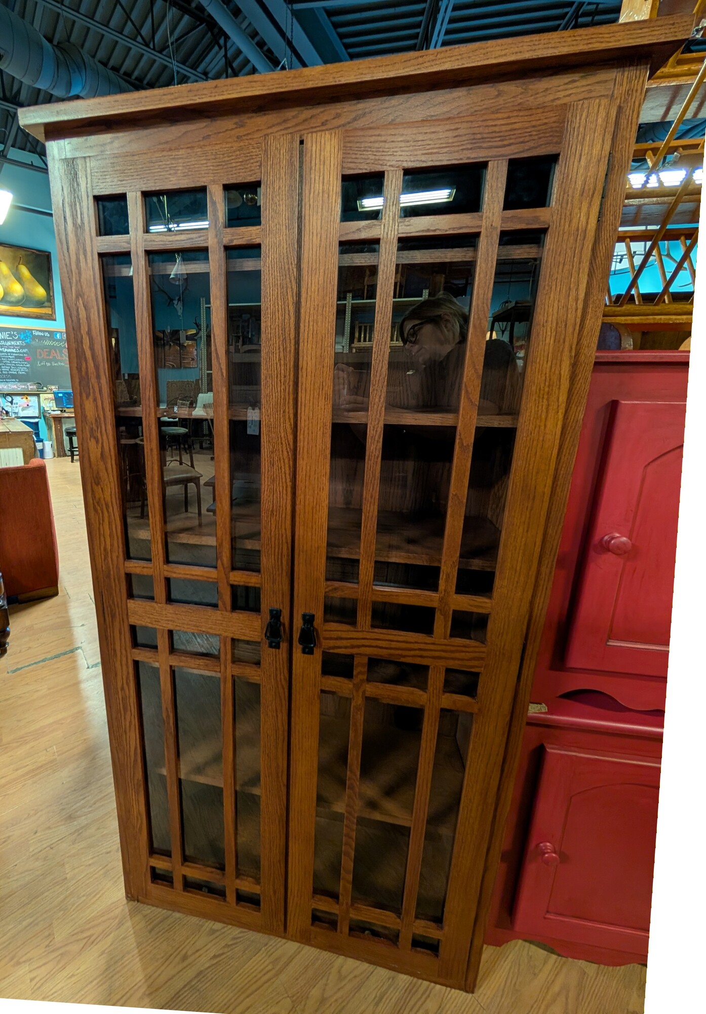 Mission Style W/Glass Doors, Dark Stain, 2 Door 37.25 x 12 x 72h