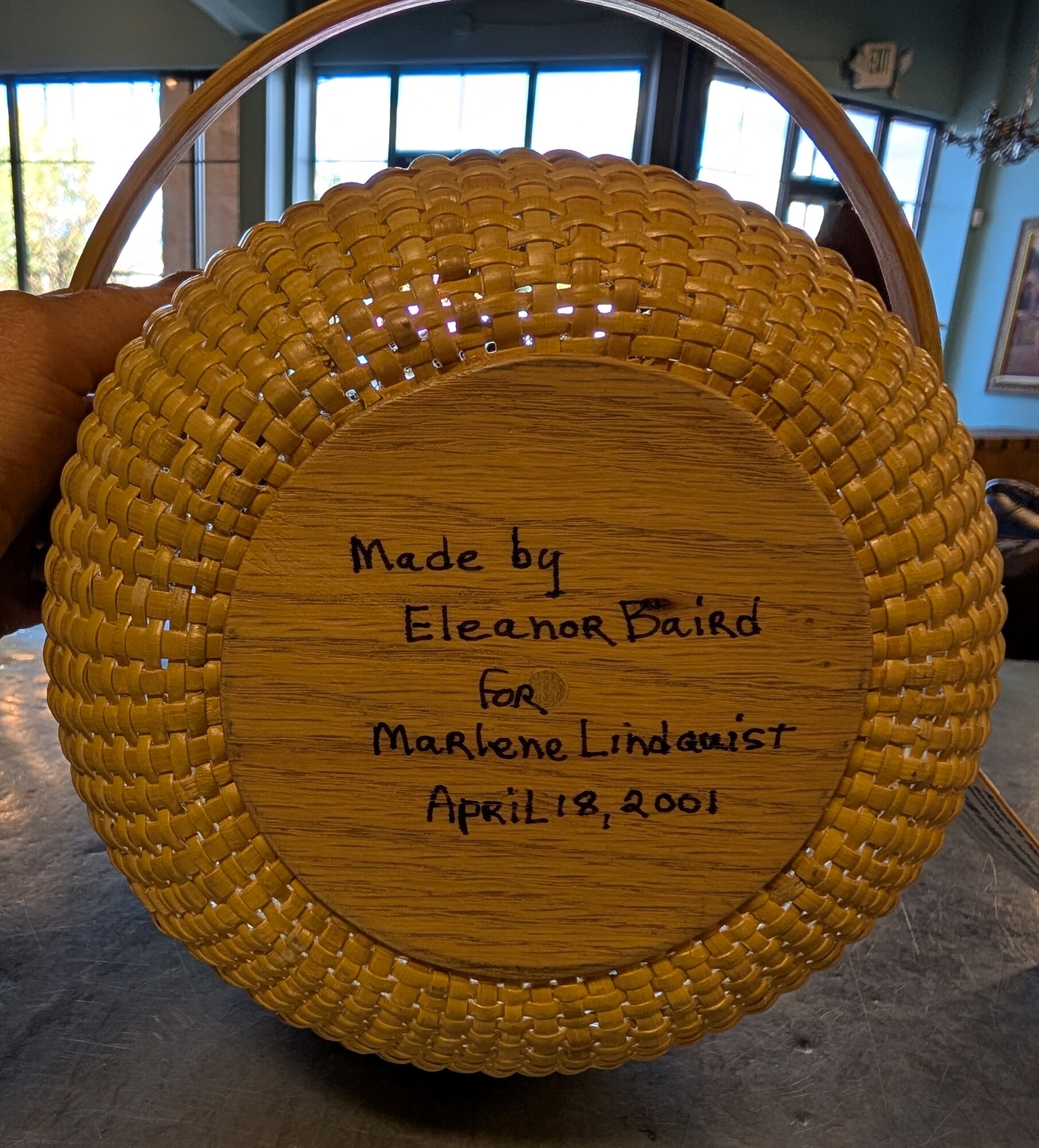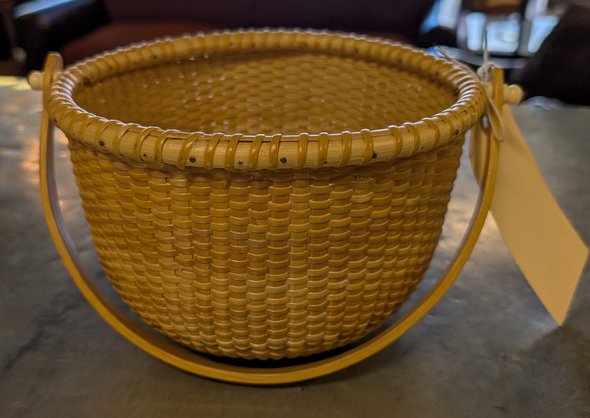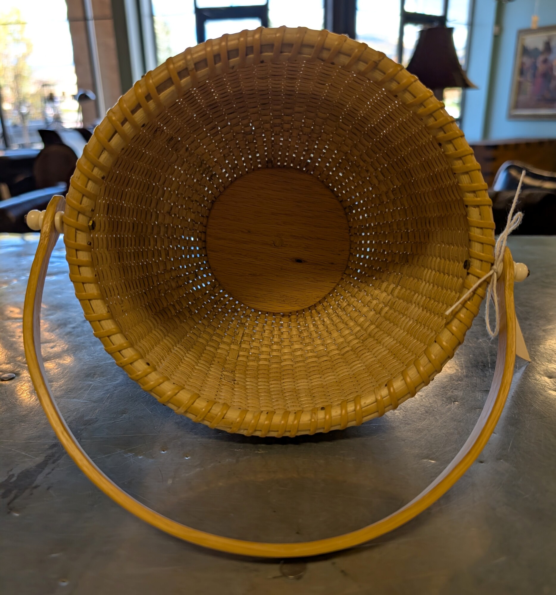 Nantucket Lightship Basket, Bone Knobs Made by Eleanor Baird 9.5 Round 5in height- 10in h with handle