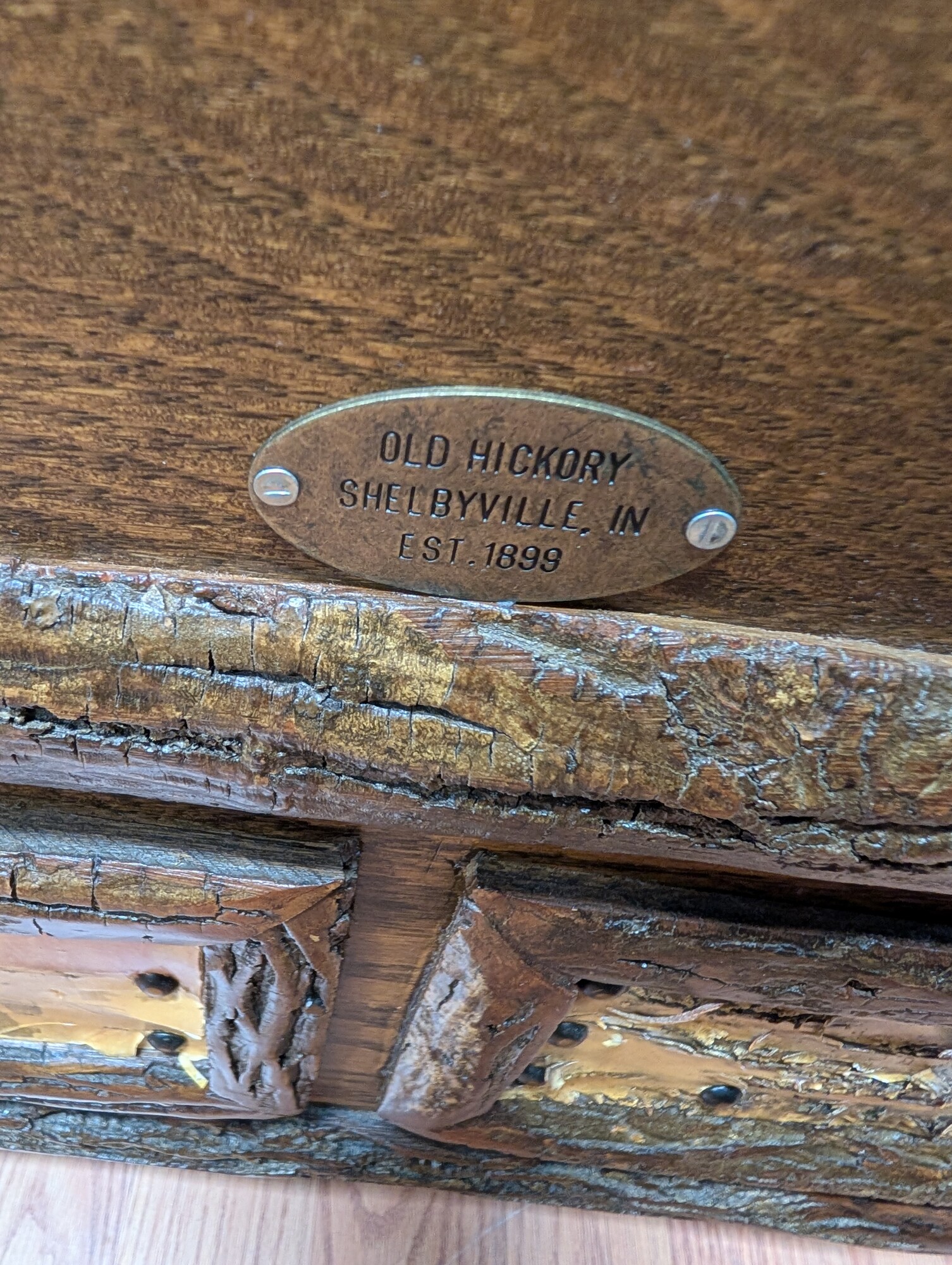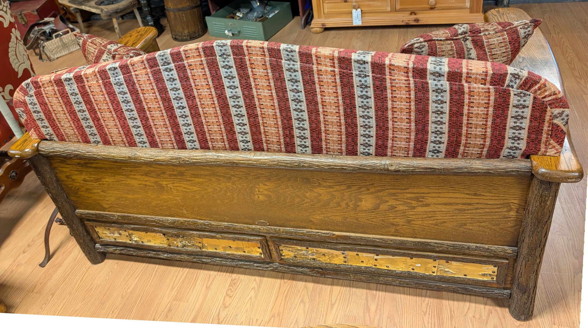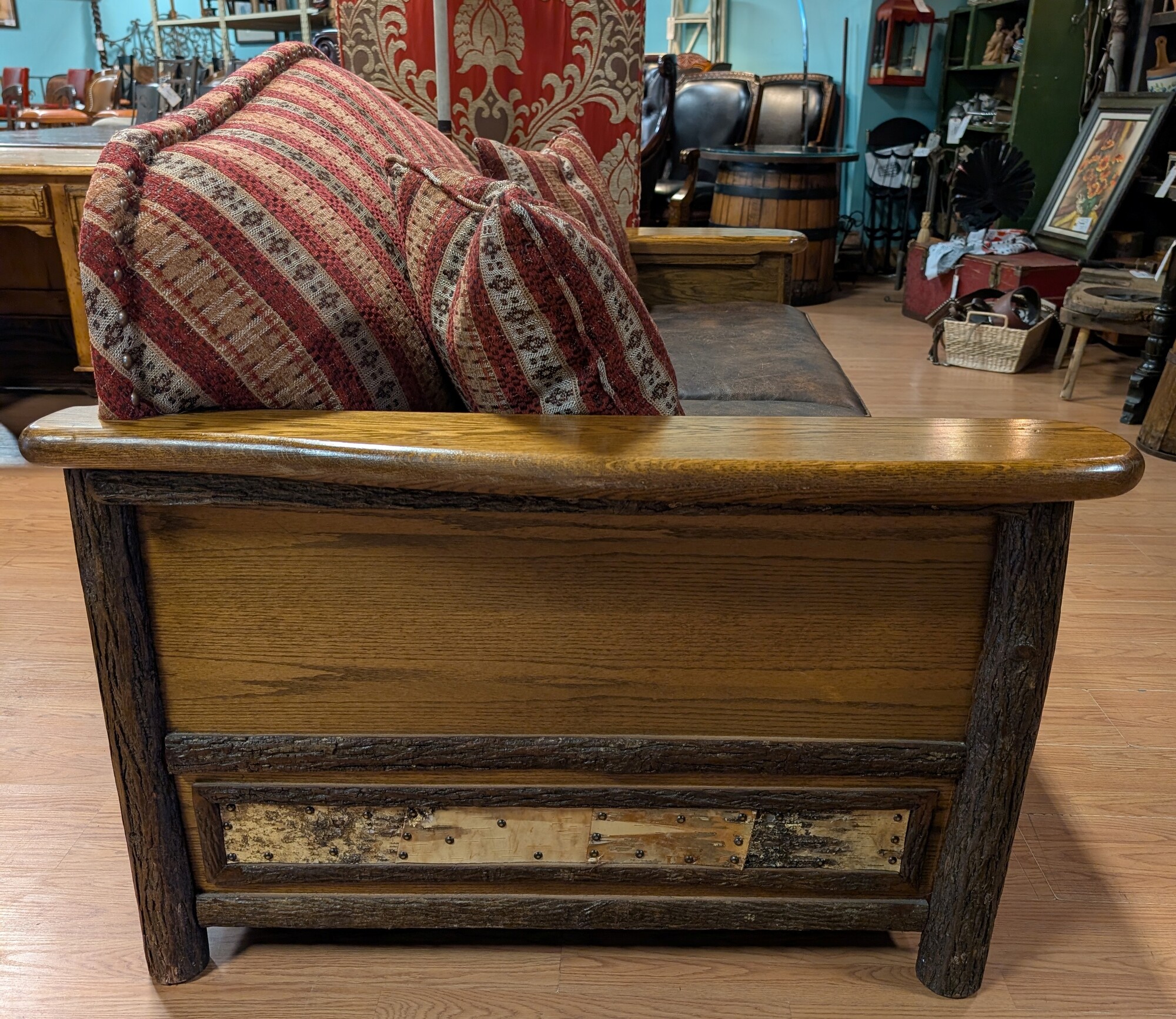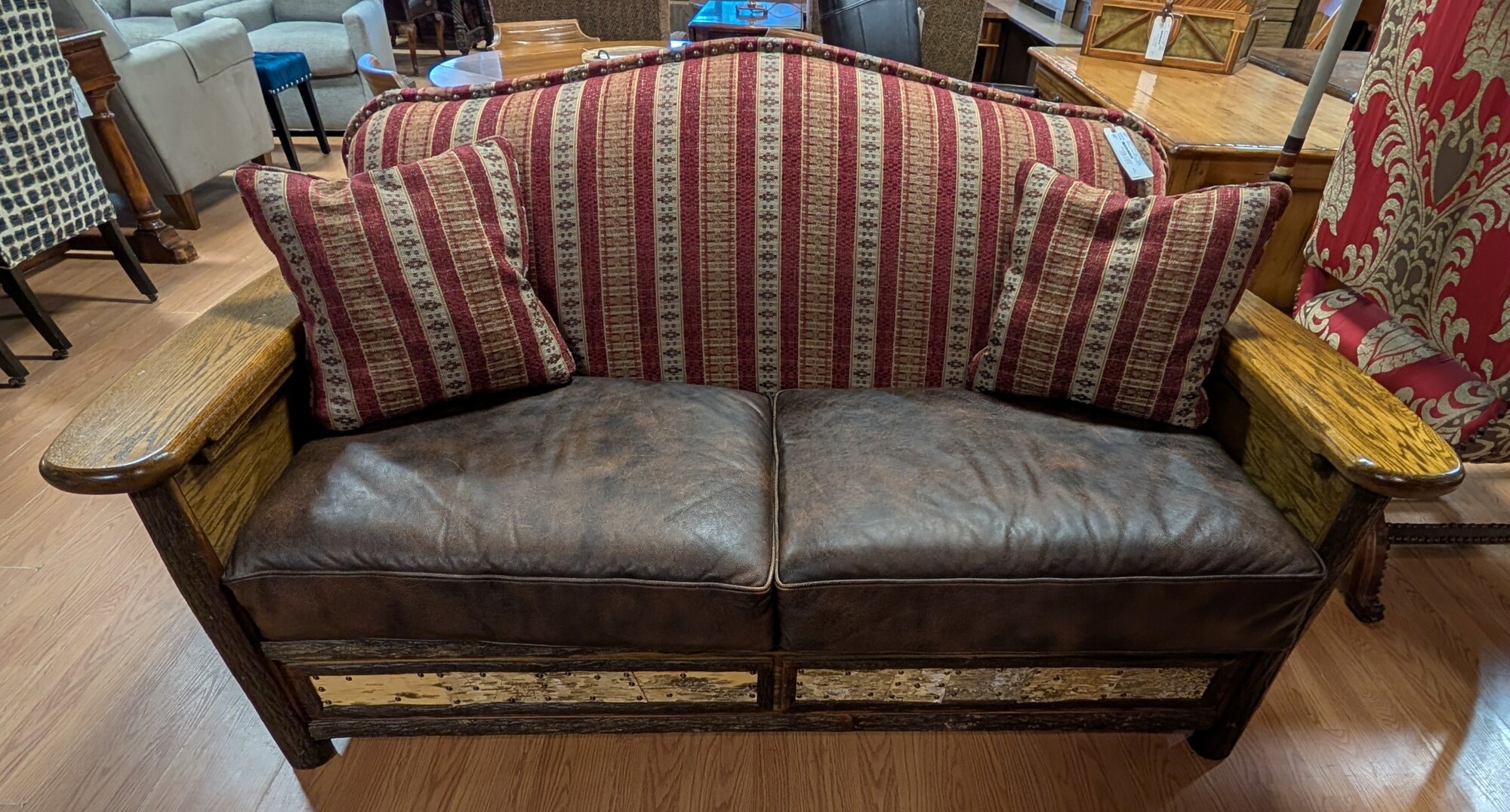 Old Hickory Woodland Sofa, Birch Bark, Rustic Leather and Upholstery 75 x 40 x 39h