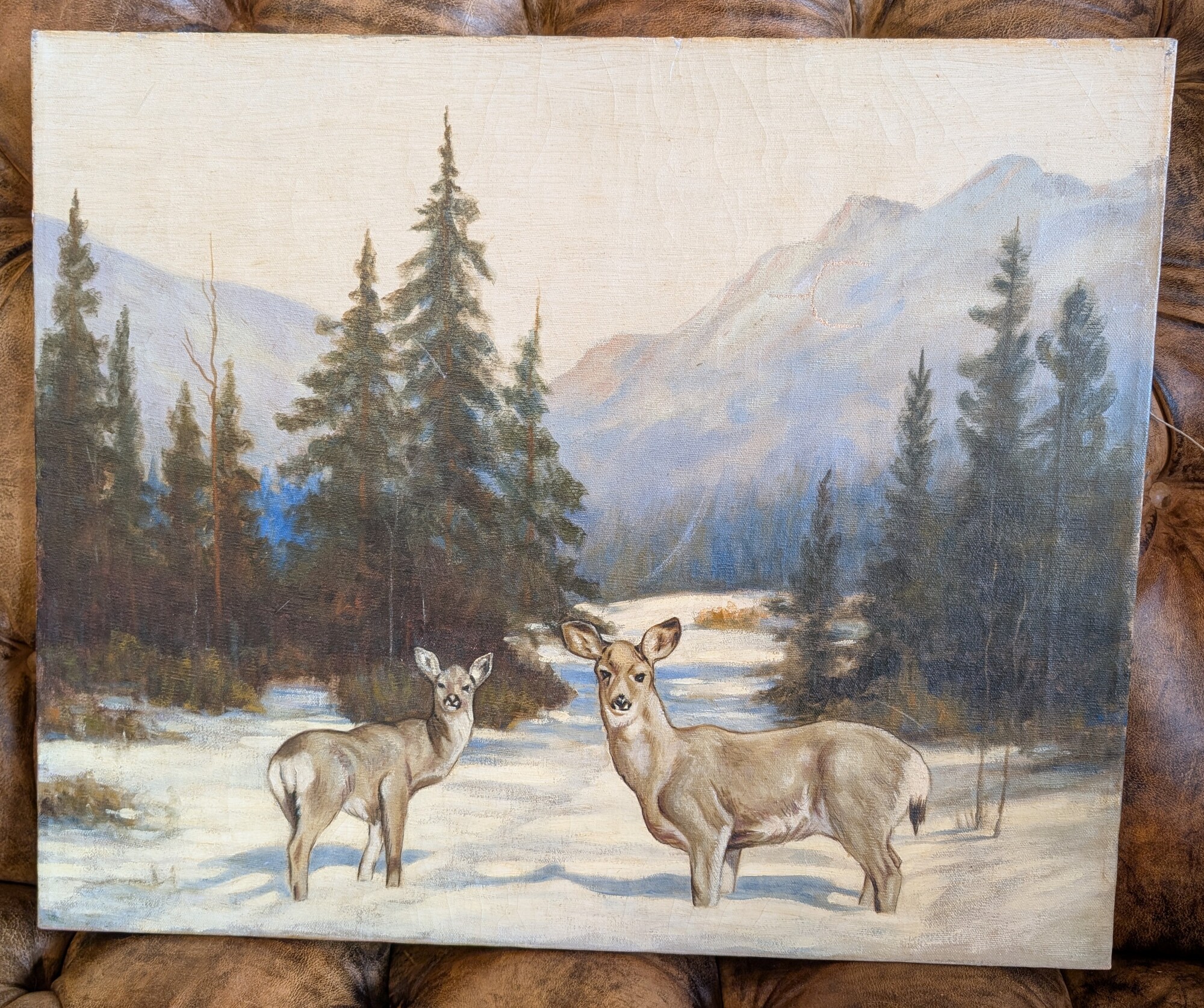 Original Deer Painting, Vintage, Unframed 22 x 18h