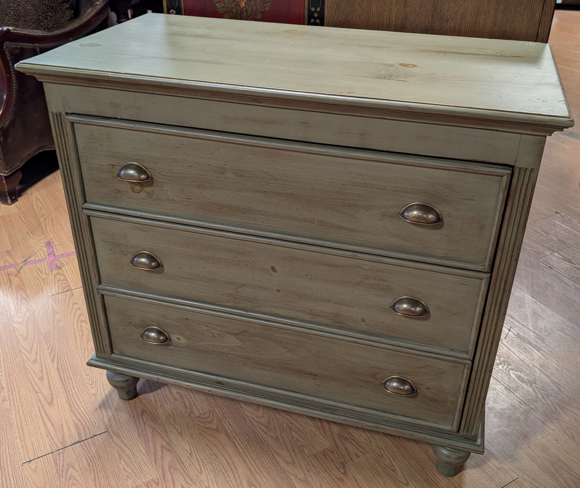 Painted Pine Dresser, Green, 3 Drawer 30 x 28.5 x 34h
