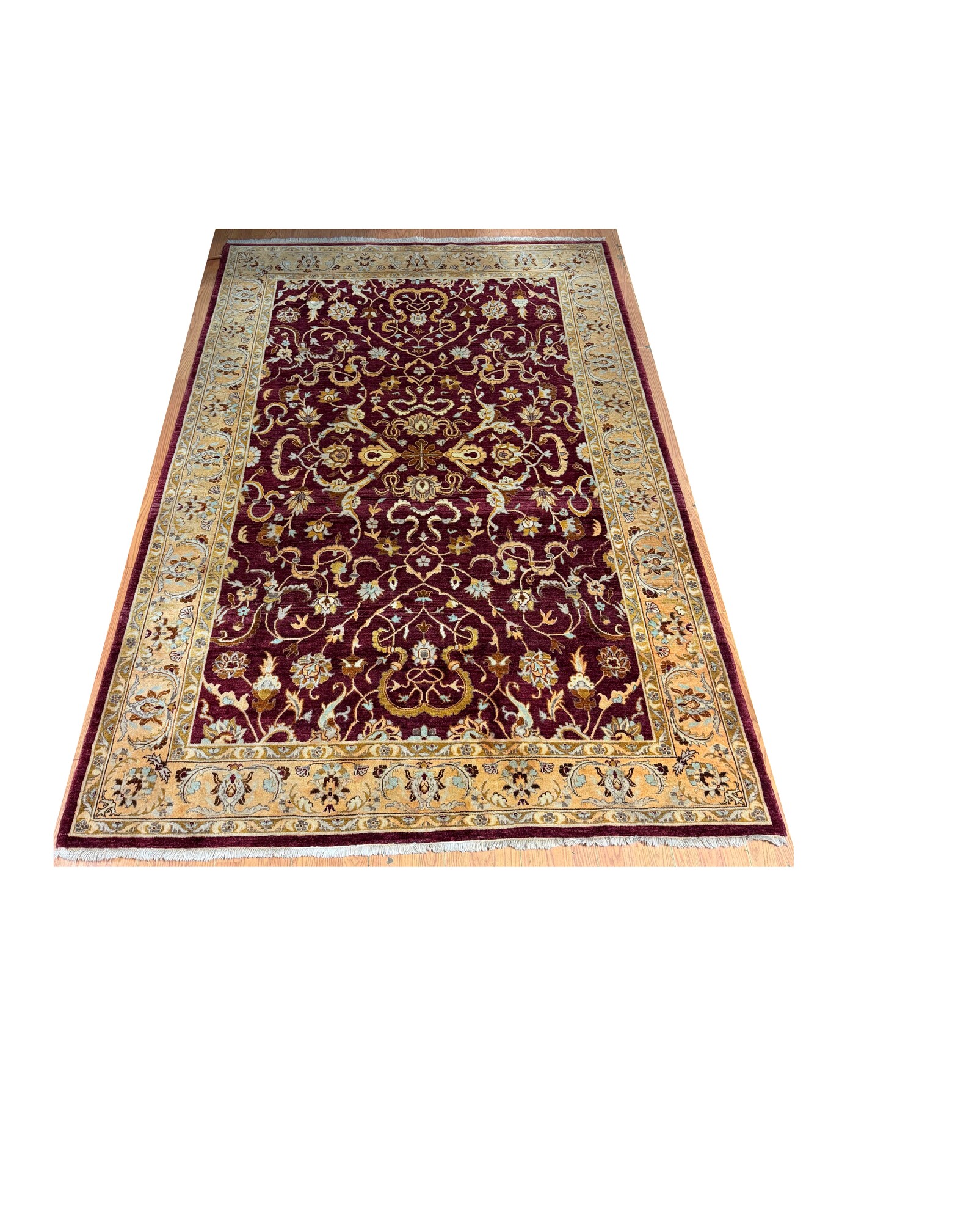 Pakistan Handknotted, Tan/burg, 6 X 9