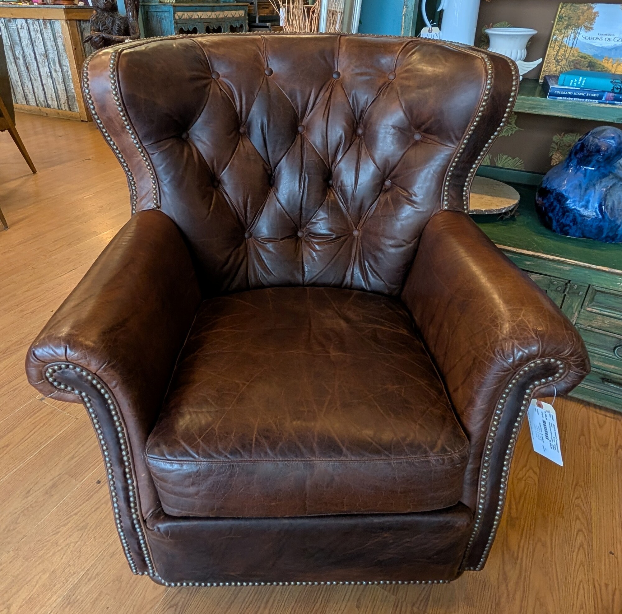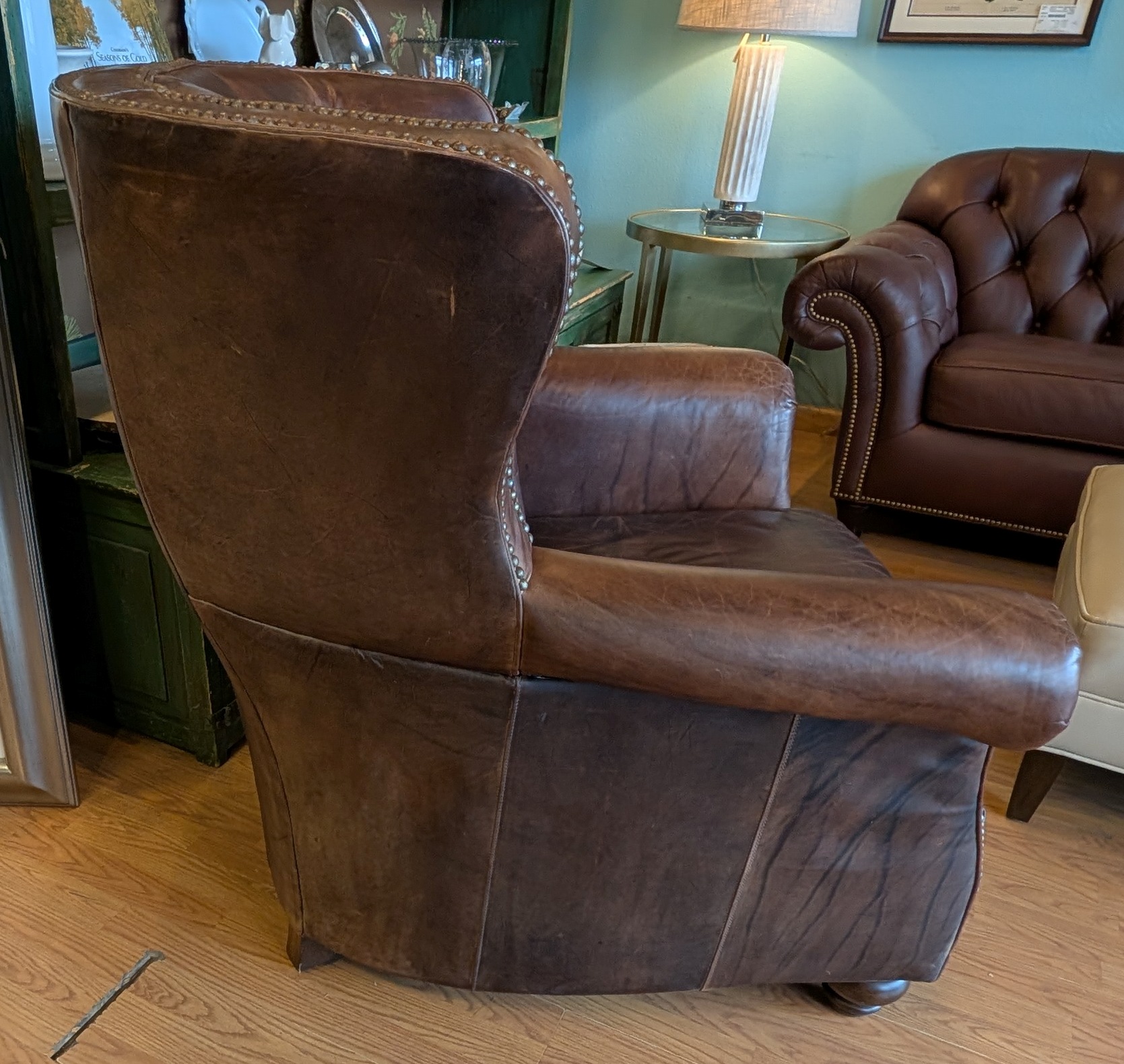 Paul Robert Stud Leather, Brown, Wingback 36 x 36 x 41h