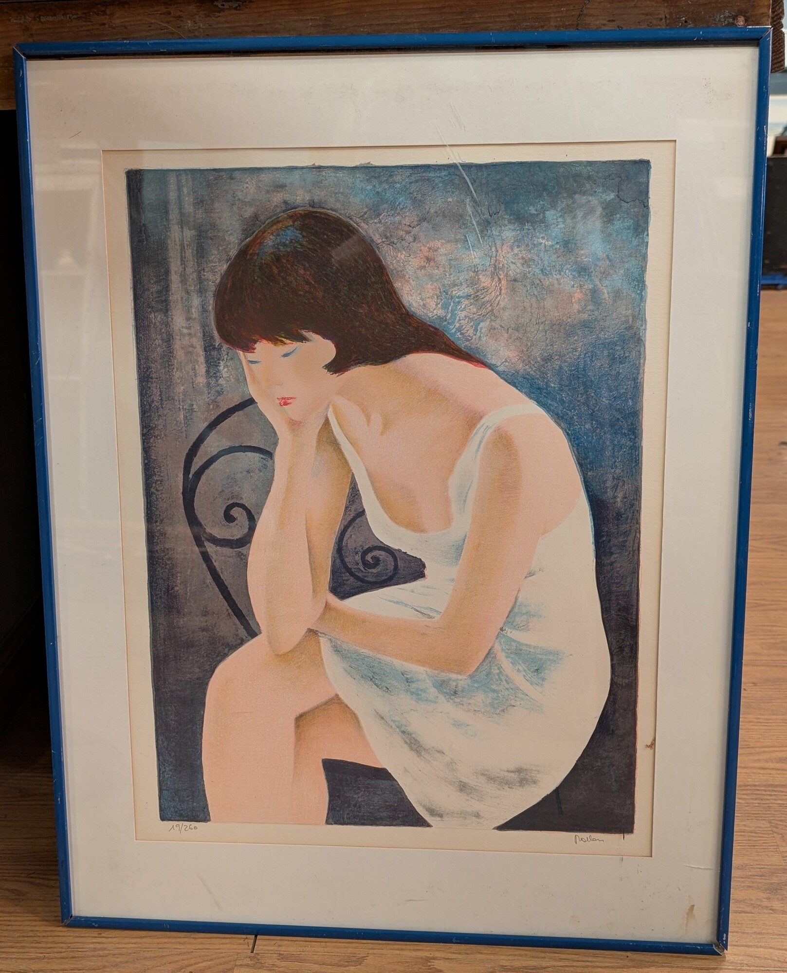 Pensive Woman Signed, Limit Edition, Frame 21 x 28h
