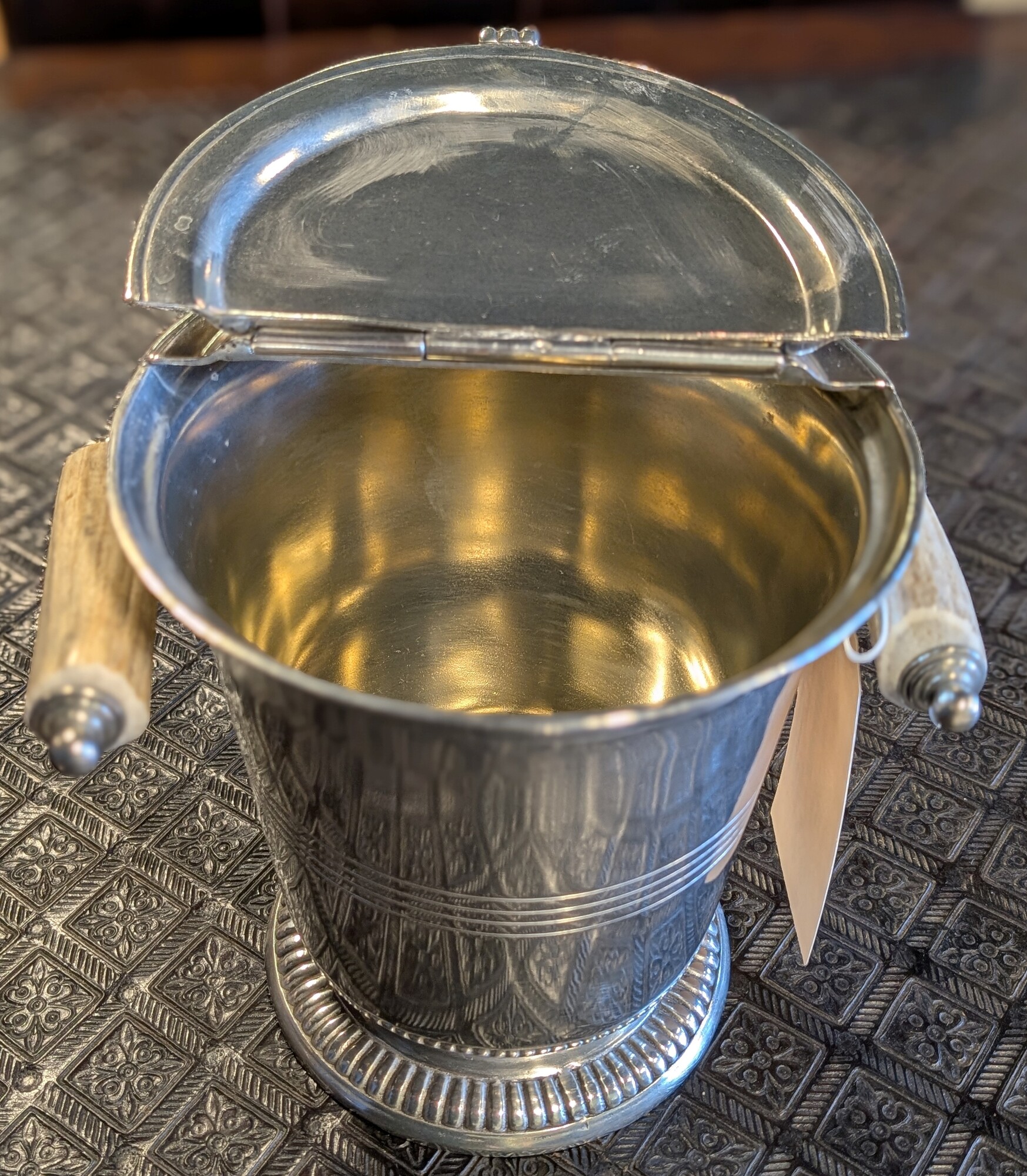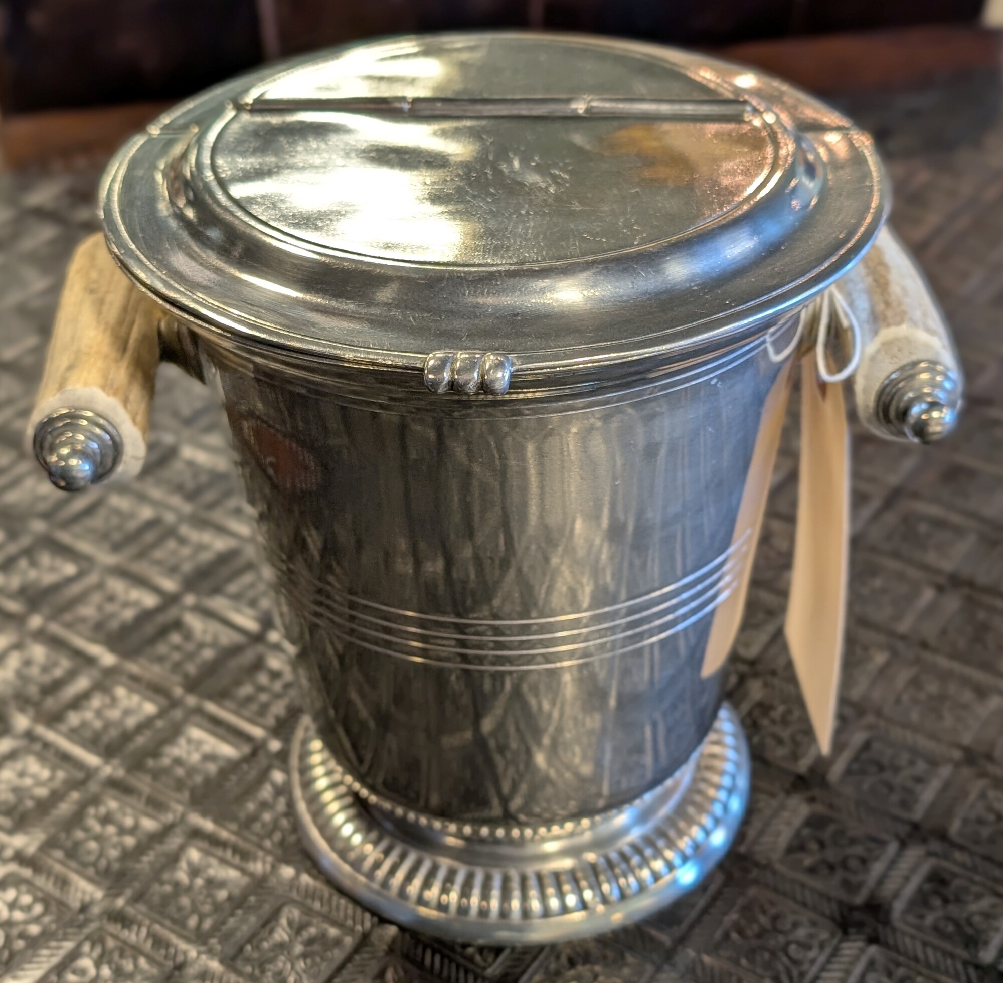 Pewter Ice Bucket, Vagabond, House Antler Handle 9 x 7.5 x 8h