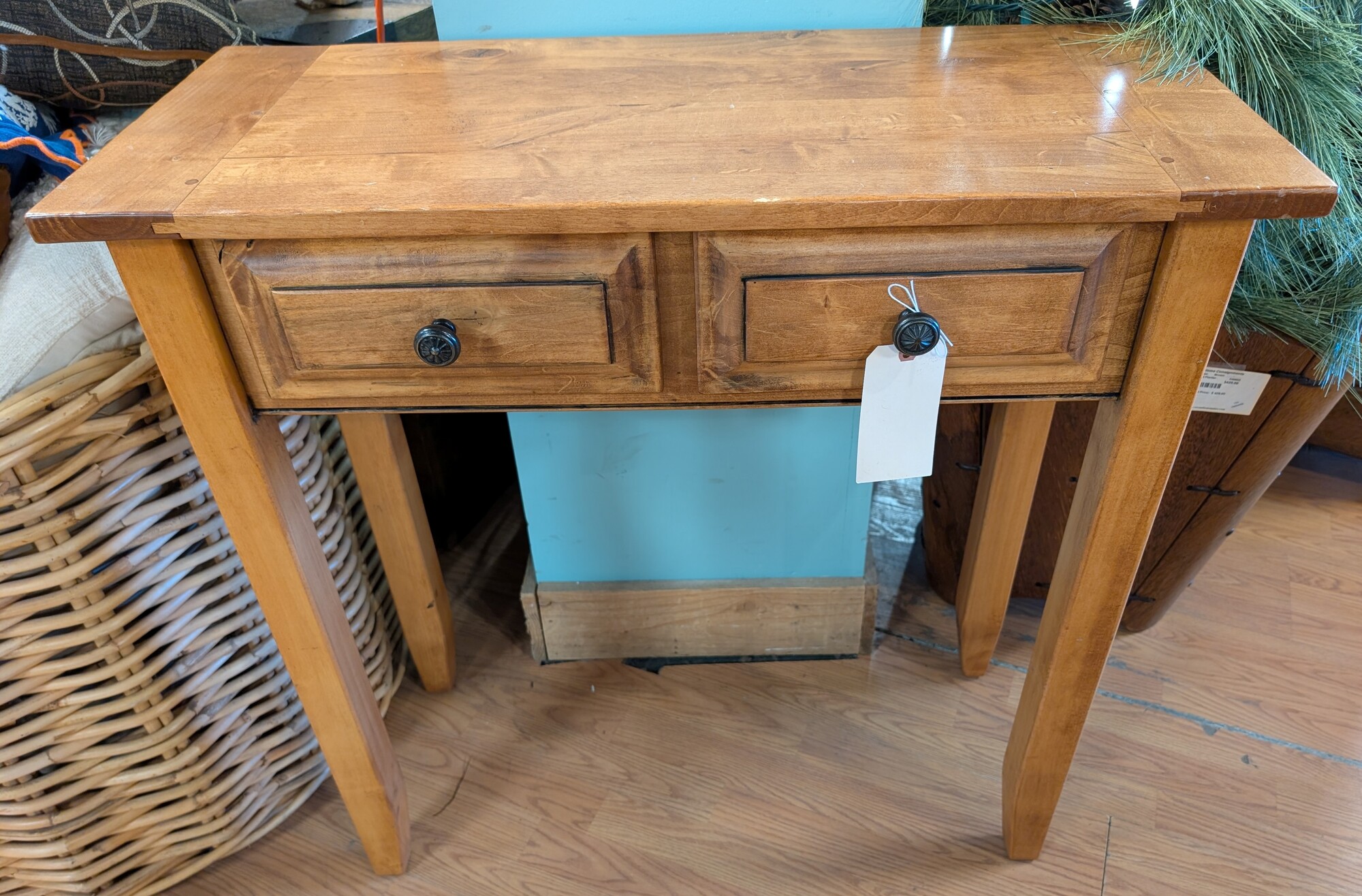 Pine Console Table, 2 Drawer 34 x 14.5 x 33.5h